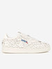 Die Medalist Turnschuhe von Autry wurden mit modernen Proportionen und hochwertigen Materialien neu interpretiert und verleihen den 80er-Jahre-Sneakern einen modernen Touch. Dieser Damenschuh ist aus weichem, weißem Leder gefertigt und mit beigen Wildledereinsätzen versehen, die dem Design ein unverwechselbares Finish verleihen. Die Fersenlasche aus goldfarbenem Leder ist mit dem Autry-Logo versehen.