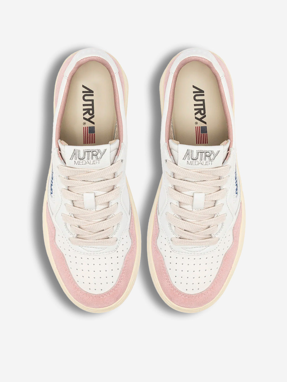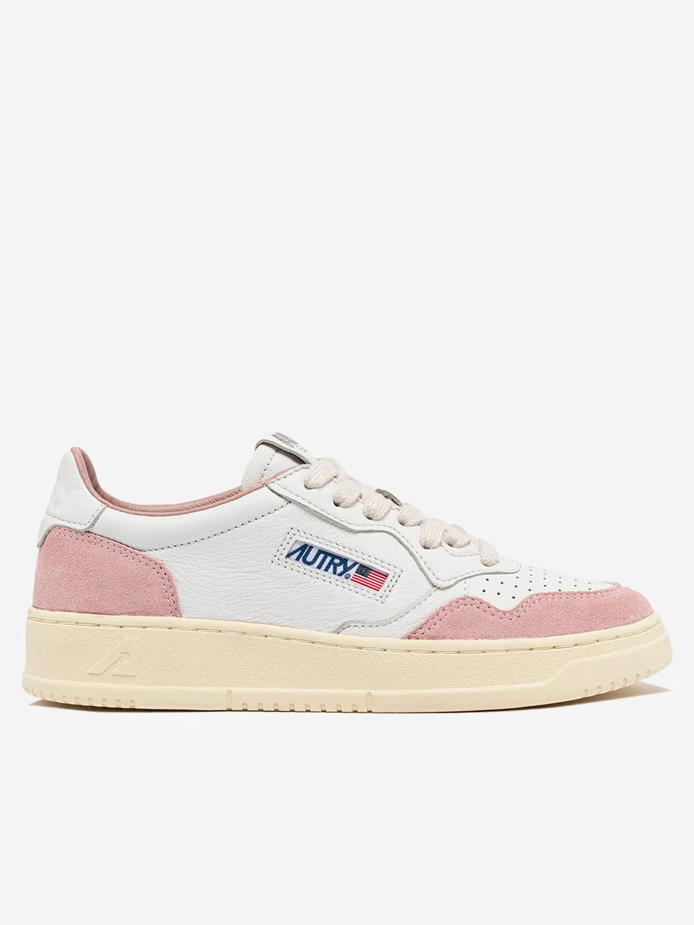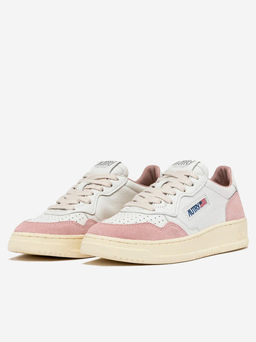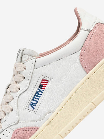 Die Medalist Turnschuhe von Autry wurden mit modernen Proportionen und hochwertigen Materialien neu interpretiert und verleihen den 80er-Jahre-Sneakern einen modernen Touch. Dieser Damen-Sneaker ist aus weichem, weißem Leder mit einer handgefertigten, gewaschenen Behandlung gefertigt und mit puderrosa Wildledereinsätzen veredelt, die dem Design ein unverwechselbares Finish verleihen. Die Fersenlasche aus Leder ist mit dem Autry-Logo versehen.