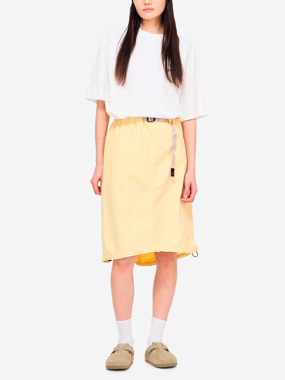Dieser Midirock von Gramicci ist ein Damenmodell, das Minimalismus und Outdoor-Geist miteinander verbindet. Dieser funktionelle Rock aus strapazierfähigem Nylon ist unglaublich leicht und zeichnet sich durch ein schnörkelloses Design aus. Der wasserabweisende und schnell trocknende Rock von Gramicci eignet sich sowohl für technische Streetwear als auch für lässige Mix-and-Match-Looks. Außerdem ist er faltbar und lässt sich so ideal im Rucksack oder in der Tasche verstauen, bevor Sie zu Ihrem nächsten Abenteuer aufbrechen.