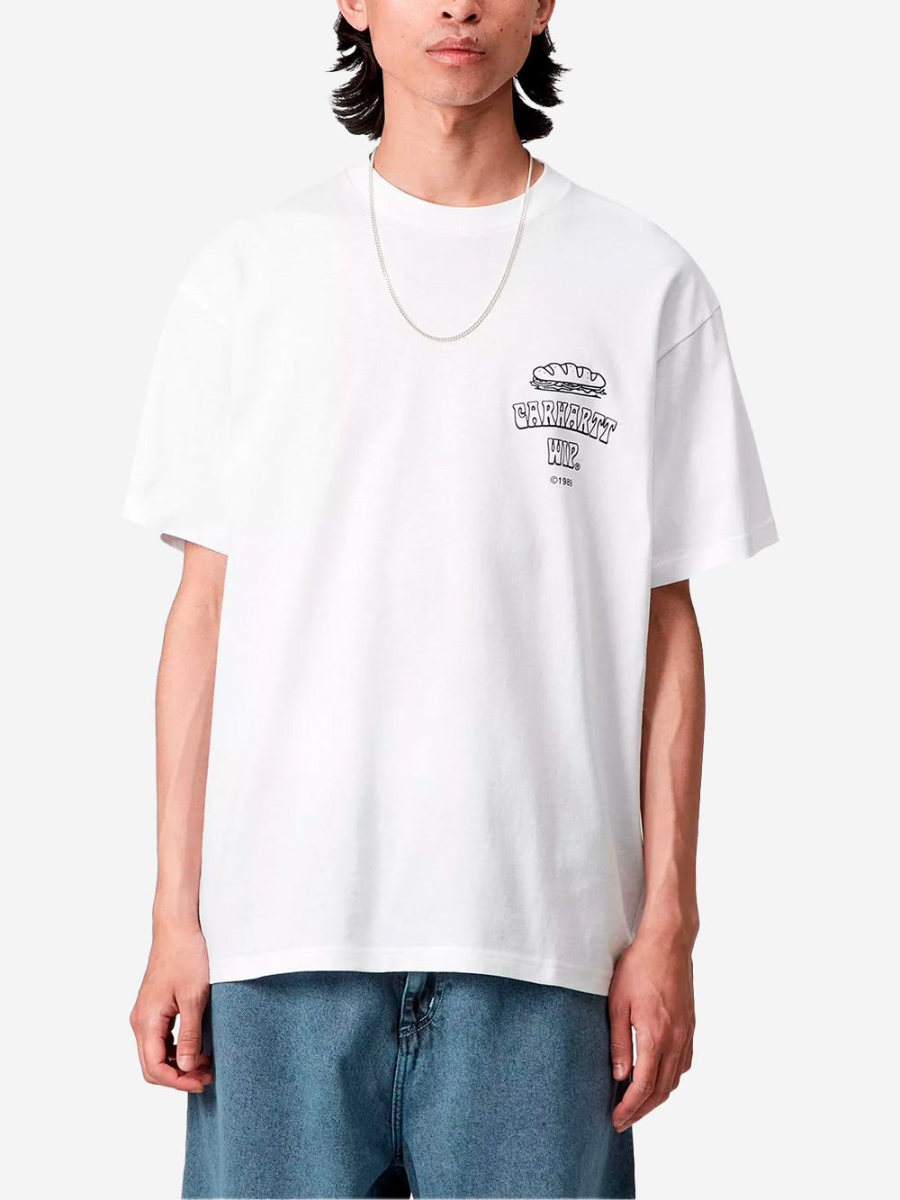 Das Sandwich-T-Shirt von Carhartt WIP ist der perfekte Streetwear-Look für den Sommer. Das T-Shirt ist aus leichtem Baumwolljersey gefertigt und hat eine lockere Passform. Es ist mit einer respektlosen Sandwich-Grafik und dem Carhartt WIP-Logo verziert. Verleihen Sie Ihrer T-Shirt-Rotation mit dem Sandwich-T-Shirt in Weiß einen verspielten Touch.