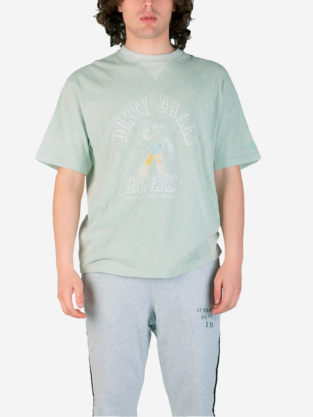 Inspiriert von den endlosen Landschaften und dem Erbe des amerikanischen Südwestens, verbindet das Ghost Ranch T-Shirt mit Rundhalsausschnitt Vintage-Charme mit moderner Handwerkskunst. Es ist aus technischem Jersey gefertigt und bietet ein weiches und dennoch strukturiertes Tragegefühl für ganztägigen Komfort. Das T-Shirt hat eine leicht lockere Passform und ist mit auffälligen Prints auf Brust und Rücken versehen, die eine Hommage an das historische Erbe von Champion darstellen. Mit natürlichen Farben, die an Erde, Stein und Indigo erinnern, ist es ein vielseitiges Stück, das amerikanische Sportbekleidung mit einem abgenutzten, authentischen Look verkörpert.