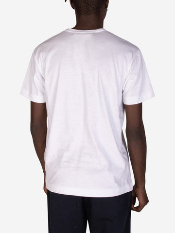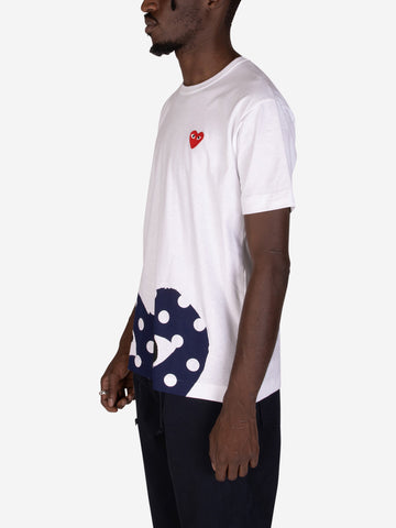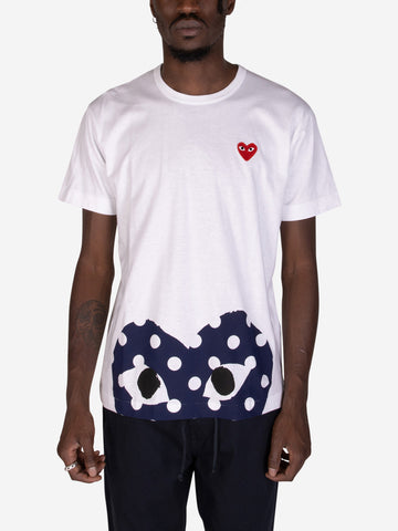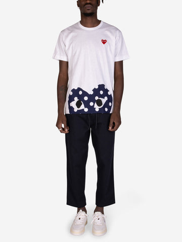 Dies ist nicht irgendein weißes T-Shirt, es ist das Comme des Garçons T-Shirt mit zwei Herzen. Hergestellt aus hochwertiger Baumwolle für unvergleichliche Weichheit und Atmungsaktivität, bietet dieses T-Shirt außergewöhnlichen Komfort, den Sie den ganzen Tag lang lieben werden. Der klassische Rippkragen und die schlichte Silhouette sorgen für einen zeitlosen Stil und machen es zu einem vielseitigen Kleidungsstück, das sich mühelos von lässigen Wochenenden zu eleganten Tagen kombinieren lässt. Aber es ist der unverwechselbare Comme des Garçons Play-Touch, der dieses Must-have wirklich aufwertet: Das rote gestickte Herz auf der Brust verleiht ihm einen frischen Touch, während ein zweites gepunktetes Herz am unteren Saum ein auffälliges Detail darstellt.