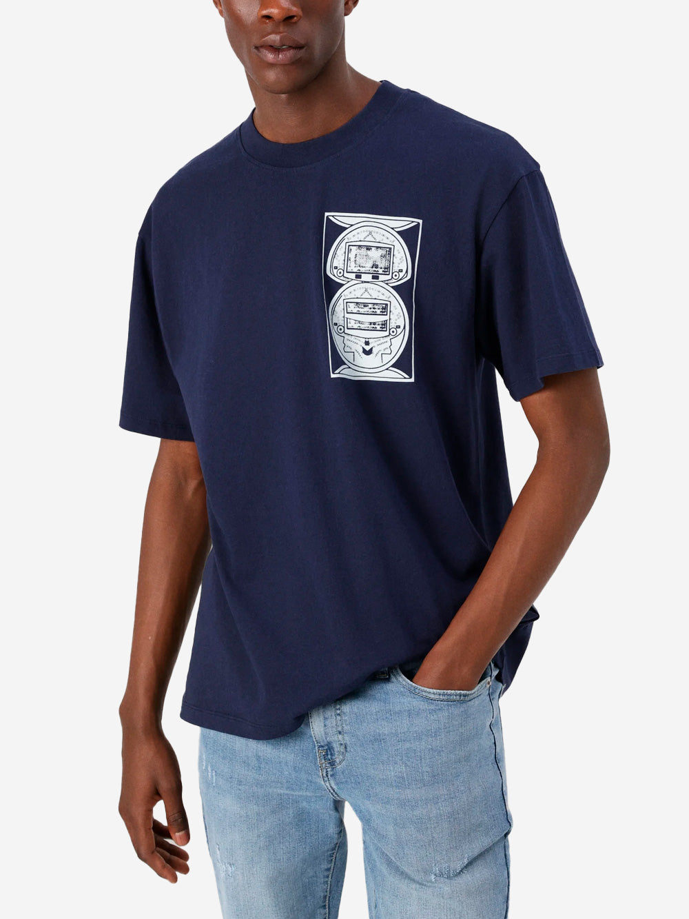 Das blaue Slot Machine-T-Shirt von Edwin ist mehr als nur ein T-Shirt. Das aus weichem Baumwolljersey gefertigte T-Shirt zeigt auf der Brust und auf dem Rücken Prints, die eine Hommage an die japanische Kultur und Streetwear mit einem Gaming-Twist sind. Die übergroße Passform und der gerippte Kragen machen es lässig und raffiniert zugleich. Ergänzen Sie Ihre Garderobe und werden Sie Teil der Edwin-Community.