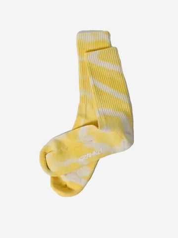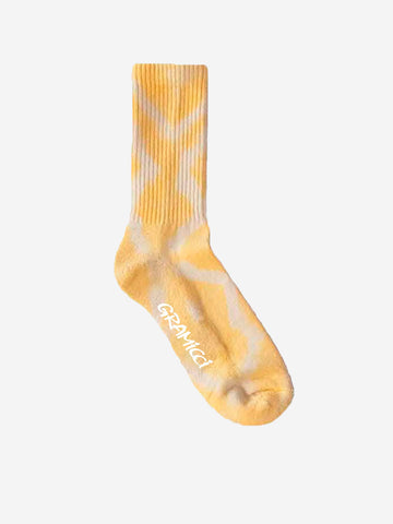 Die Gramicci-Socken sind das Accessoire, das Ihren Look vervollständigt. Die Socken aus weicher Bio-Baumwolle sind mit einem sensationellen Batikdruck versehen, der sie originell und begehrt macht. Der gerippte Knöchel sorgt für zusätzliche Textur, während das aufgedruckte Logo am unteren Ende den Outdoor-Geist von Gramicci unterstreicht. Tragen Sie sie mit Sabots oder Turnschuhen und Chino-Hosen, um sie hervorzuheben.