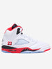Der Air Jordan 5 Retro "Fire Red" ist eine Neuinterpretation des 35-jährigen Jubiläums des Modells und bringt eine originale Farbgebung zurück, die bei Fans und Sammlern gleichermaßen beliebt ist. Das Obermaterial des Air Jordan 5 Retro Fire Red besteht aus einer Mischung aus echtem Leder und Synthetik. Die Farbpalette besteht aus Weiß mit feuerroten Details auf der Zwischensohle und dem Innenfutter sowie Schwarz auf der Zunge. An der seitlichen Ferse ist die Nummer 23" von Michael Jordan in Rot eingestickt, eine Hommage an Jordans Vermächtnis. Die Nike Air-Technologie absorbiert den Aufprall und sorgt für Dämpfung bei jedem Schritt, während die Gummi-Außensohle für beständige Traktion sorgt.