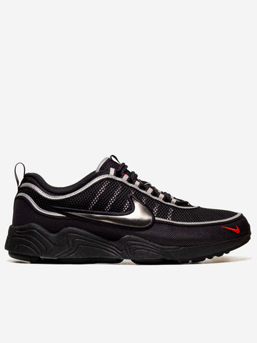 Der Nike Air Zoom Spiridon SP "Black Metallic Silver" ist der Laufschuh, der die Welt der Schuhe revolutioniert hat. Die fließenden Linien und das Farbmuster erinnern an die kultige Silhouette von 1997, ebenso wie die Dämpfungstechnologie. Das Obermaterial aus schwarzem Metallic-Mesh sorgt für maximale Belüftung, während die Zoom Air-Technologie die Dämpfung auf ein neues Niveau hebt. Der silbern schillernde Swoosh hebt sich an den Seiten ab und bildet einen starken Kontrast zum schwarzen Schutzblech. Die Gummisohle sorgt für optimalen Grip auf jedem Untergrund.