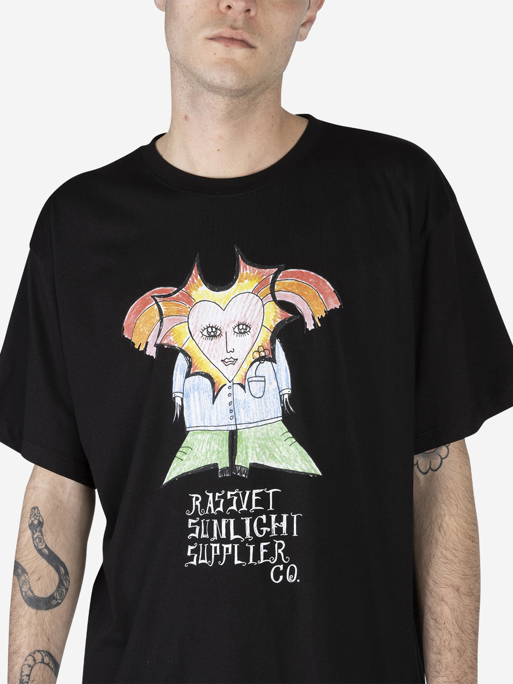 Ein unkonventioneller Druck wurde von Rassvet für das T-Shirt Sunlight Supplier gewählt, das sich mit T-Shirts und Shorts zu jeder Gelegenheit kombinieren lässt.
