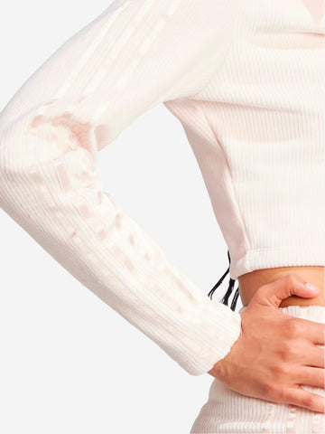 This versatile cardigan combines the practicality of sportswear with the sophistication of a daily garment. The ribbed finish adds a touch of texture and style, while the zipper closure ensures easy wearability. The deep neckline and collar provide a flattering fit, making it perfect for both formal and casual occasions.
