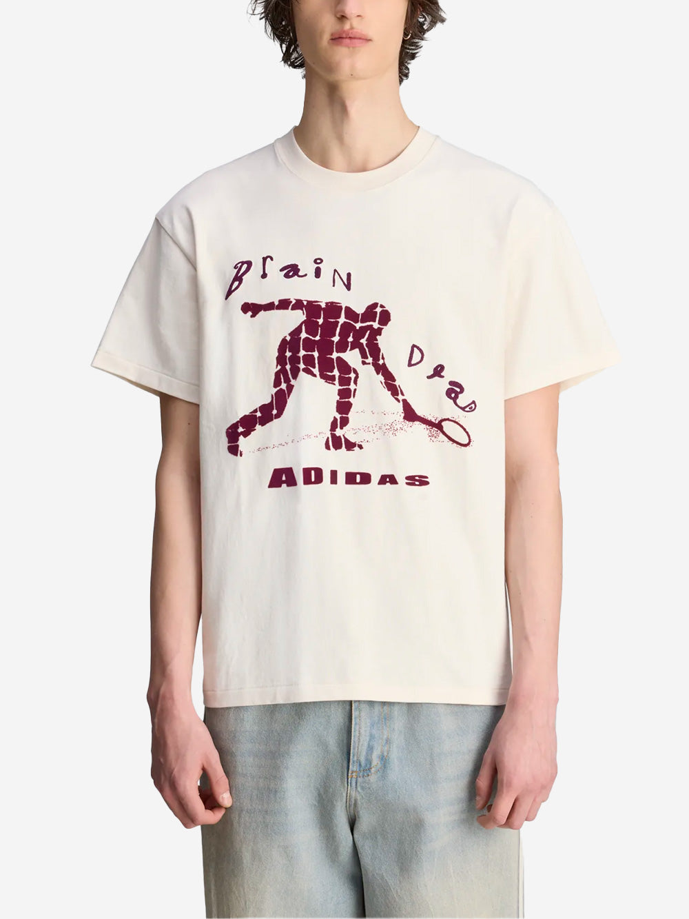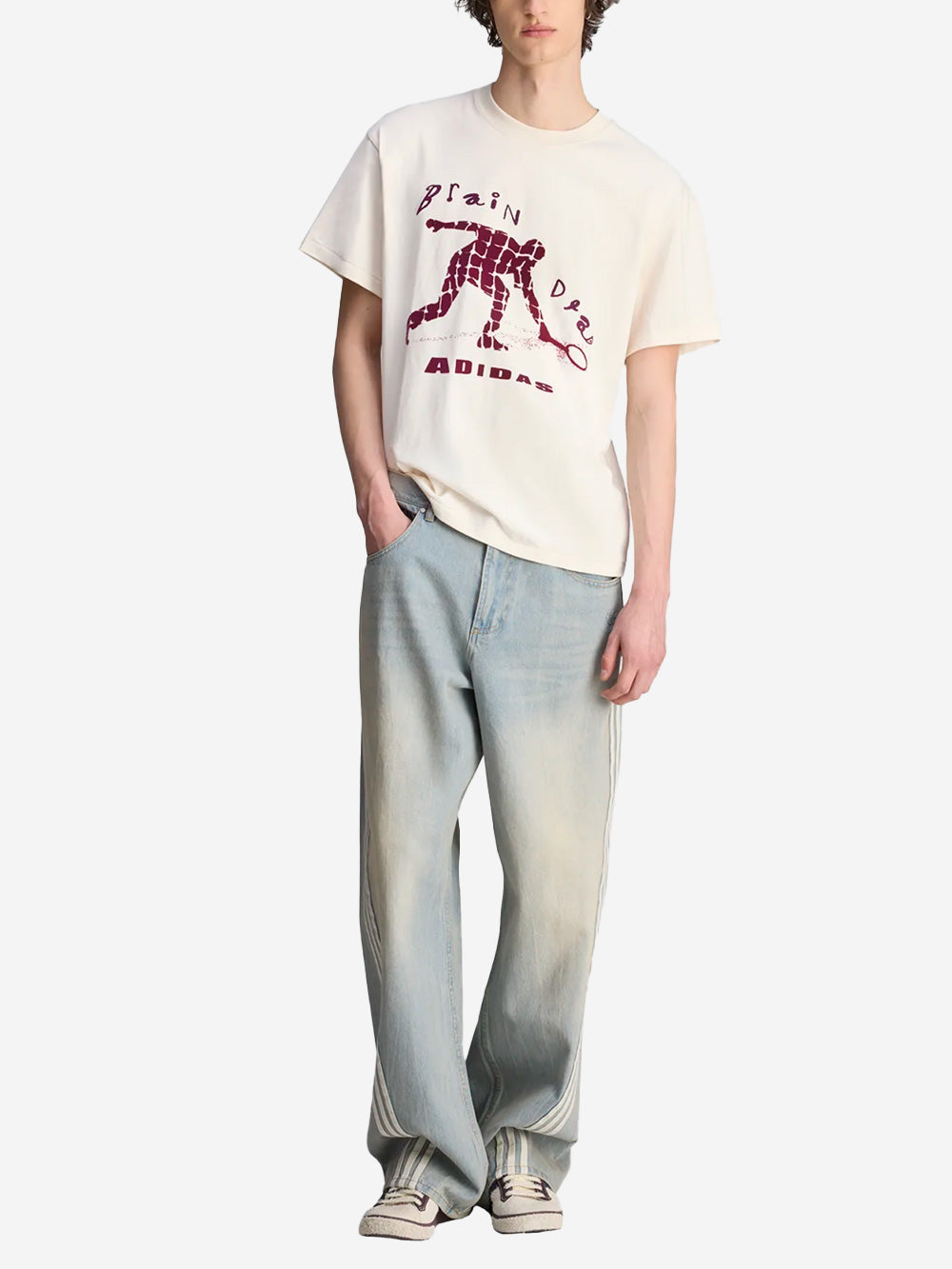 This collaborative t-shirt between adidas and Brain Dead embodies the essence of contemporary streetwear. Crafted from soft, comfortable cotton, it's designed for everyday wear with a distinct artistic edge. The focal point is the bold graphic on the front, which reimagines adidas' iconic sporting codes through Brain Dead's unique and creative lens. This artistic interpretation results in a visually striking design that resonates with modern streetwear sensibilities.