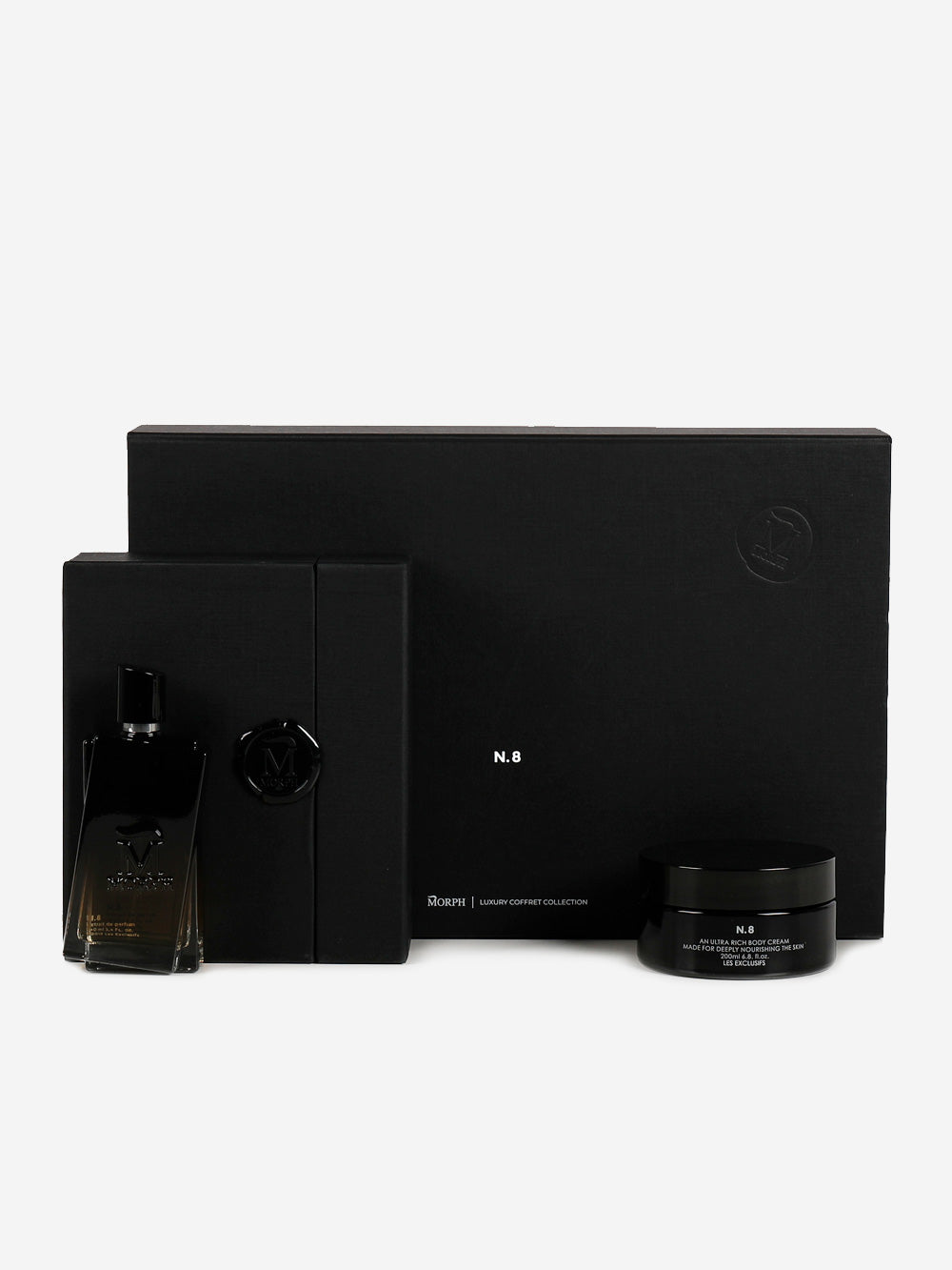 Les Exclusifs Coffret No. 8 is an elegant box set with the 200ml body cream and 100ml eau de parfum inside.