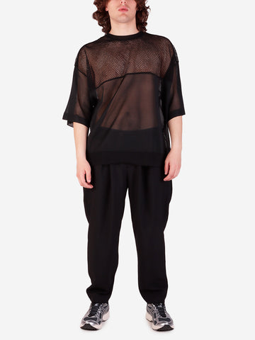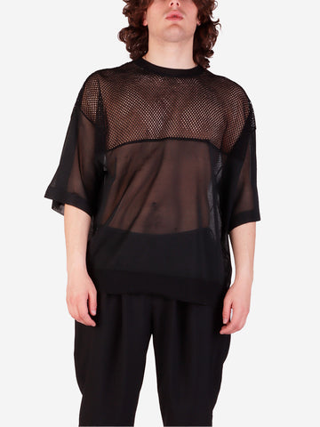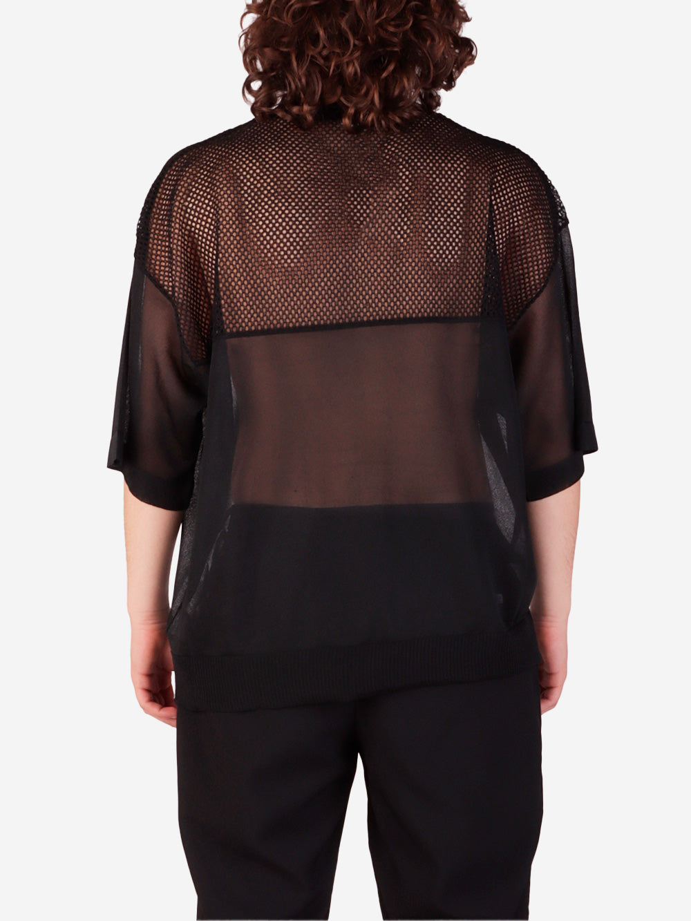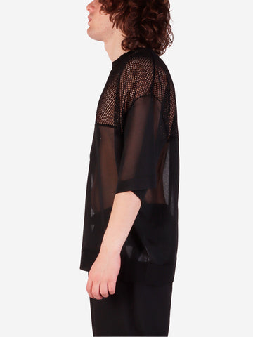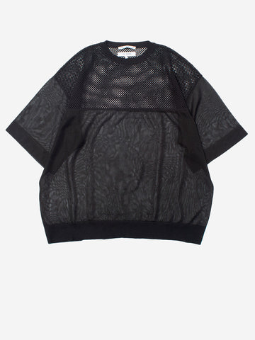 Experience the innovative combination of sheer and mesh textures with the F/CE Sheer T-Shirt, a versatile and contemporary men's garment. Crafted from a unique blend of sheer and synthetic fabrics, this tee features a striking mesh panel constructed with yarns mixed with traditional Japanese washi paper, creating a distinctive look and feel. The remaining sections utilize an extremely lightweight sheer material. Wear it confidently on its own for a bold statement or layered over a tank top for a more subtle effect – this mesh tee reimagines a sporty silhouette with a distinctly modern Japanese twist.