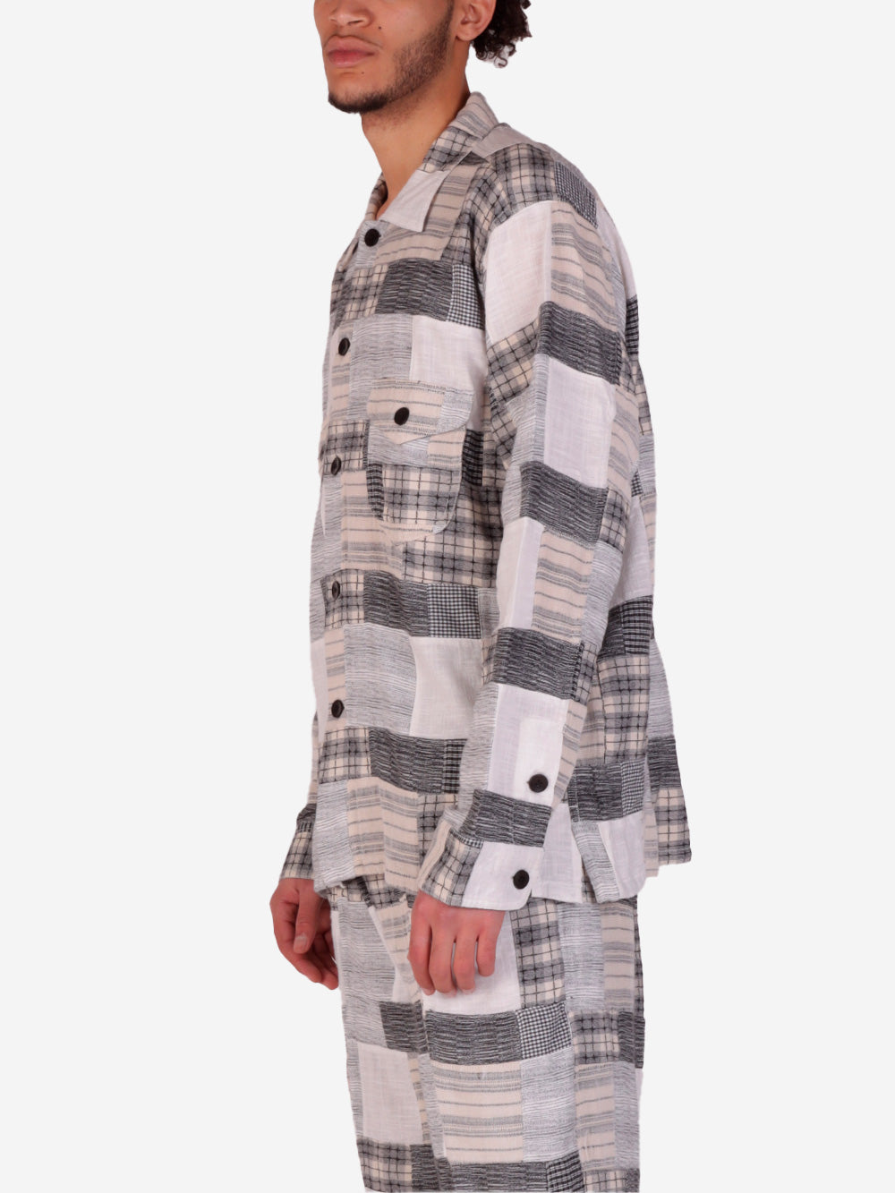 Experience the avant-garde spirit of South2 West8 with this unique patchwork shirt. Crafted from pure cotton, this garment defies convention with an unexpected blend of stripes, checks, and textures. Two buttoned patch pockets add a touch of utilitarian functionality, while the overall aesthetic embodies a rebellious yet refined spirit. Pair it with selvedge denim for a classic japanese streetwear look, or dress it up with relaxed-fit trousers for a more sophisticated ensemble. Shop the South2 West8 Patchwork Shirt and embrace the unexpected.