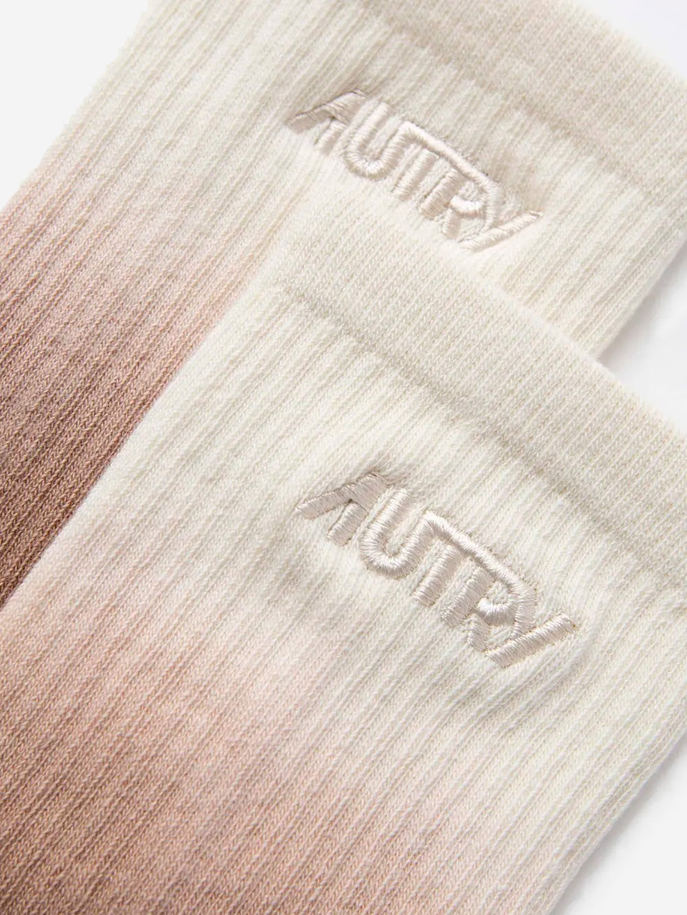 Calcetines degradados con logotipo bordado en blanco y marrón SOPU-41TC