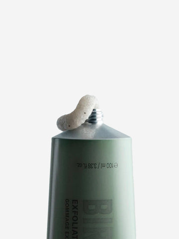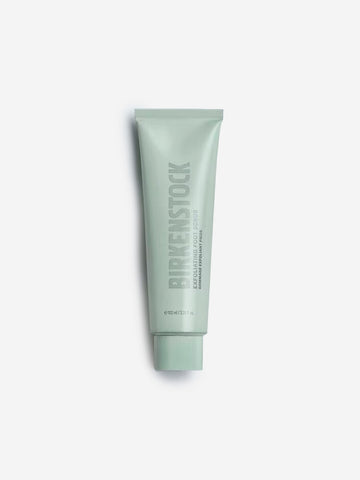 Crema fluida exfoliante intensa de Birkenstock con un 15 % de piedra pómez, un 3 % de hidrolato de menta y un 1 % de aceite de romero para exfoliar y suavizar la piel a la vez que refresca y revitaliza los pies cansados.