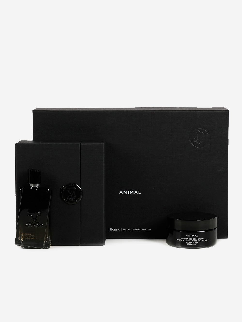 Les Exclusifs Coffret Animal es una elegante caja que contiene la crema corporal de 200 ml y el eau de parfum de 100 ml.