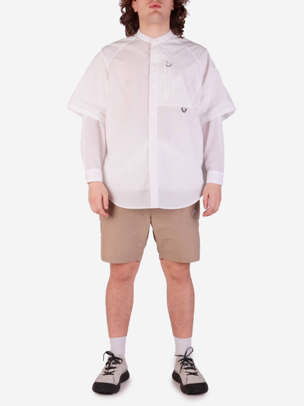 La camiseta No collar de CMF Outdoor Garment es la prenda técnica que fusiona el streetwear y el funcionalismo japonés en un diseño moderno. Confeccionada en tejido técnico de alto rendimiento, esta camiseta de CMF Outdoor Garment presenta un diseño a capas con mangas de malla y puños deportivos. Las mangas raglán proporcionan la máxima libertad de movimiento, mientras que el bolsillo con cremallera en el pecho junto con la etiqueta de bandera con anilla en D añaden un toque de utilidad adicional al diseño minimalista.
