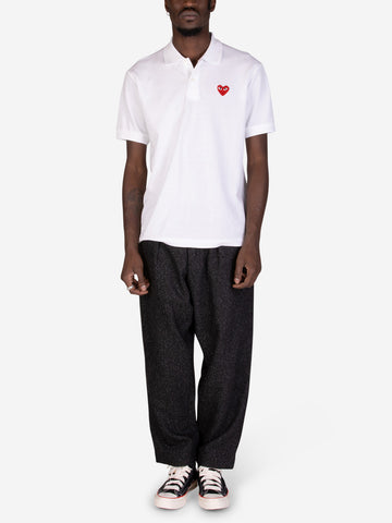 ¿Buscas un básico de armario que combine a la perfección la elegancia con un toque de ironía? El polo Comme des Garçons Play con corazón bordado es todo lo que necesitas. Confeccionado en piqué de algodón suave y transpirable, este polo ofrece una comodidad excepcional, lo que lo convierte en la opción ideal para llevar durante todo el día. Las líneas limpias y la silueta clásica garantizan la versatilidad, lo que permite vestirlo fácilmente con ropa de vestir o informal. El corazón rojo bordado, motivo distintivo de la línea Play, añade un toque de extravagancia y personalidad.