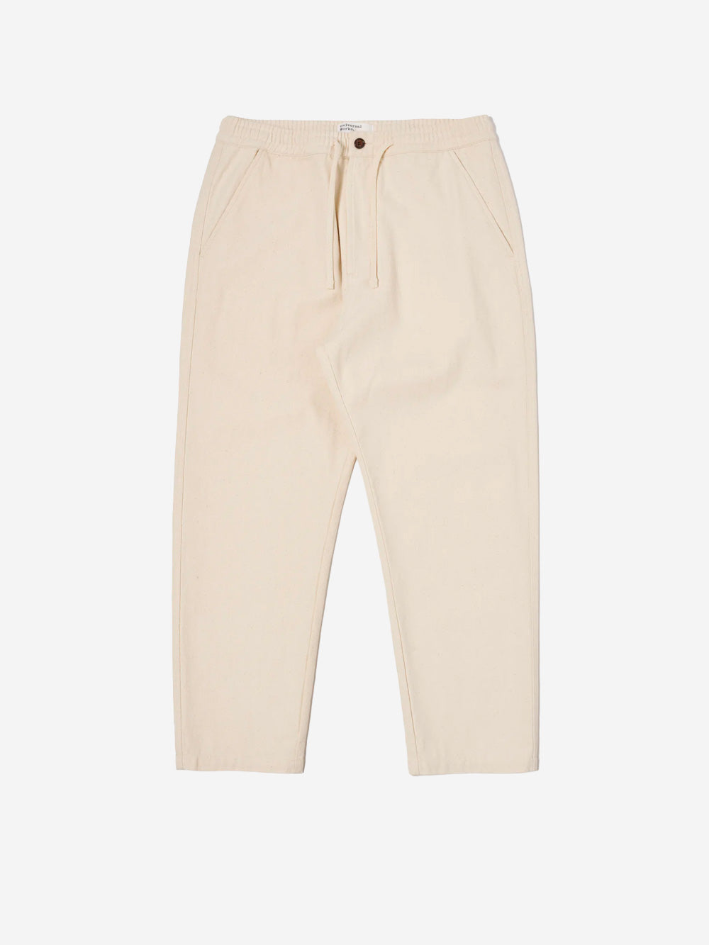 El pantalón Hi Water es un pantalón de caballero ligeramente recortado. Confeccionados en suave algodón, estos pantalones presentan un corte relajado y una silueta informal. La cintura ajustable con cordón hace que estos pantalones sean tan cómodos como unos joogers, mientras que el color crudo infunde una nota de encanto atemporal.