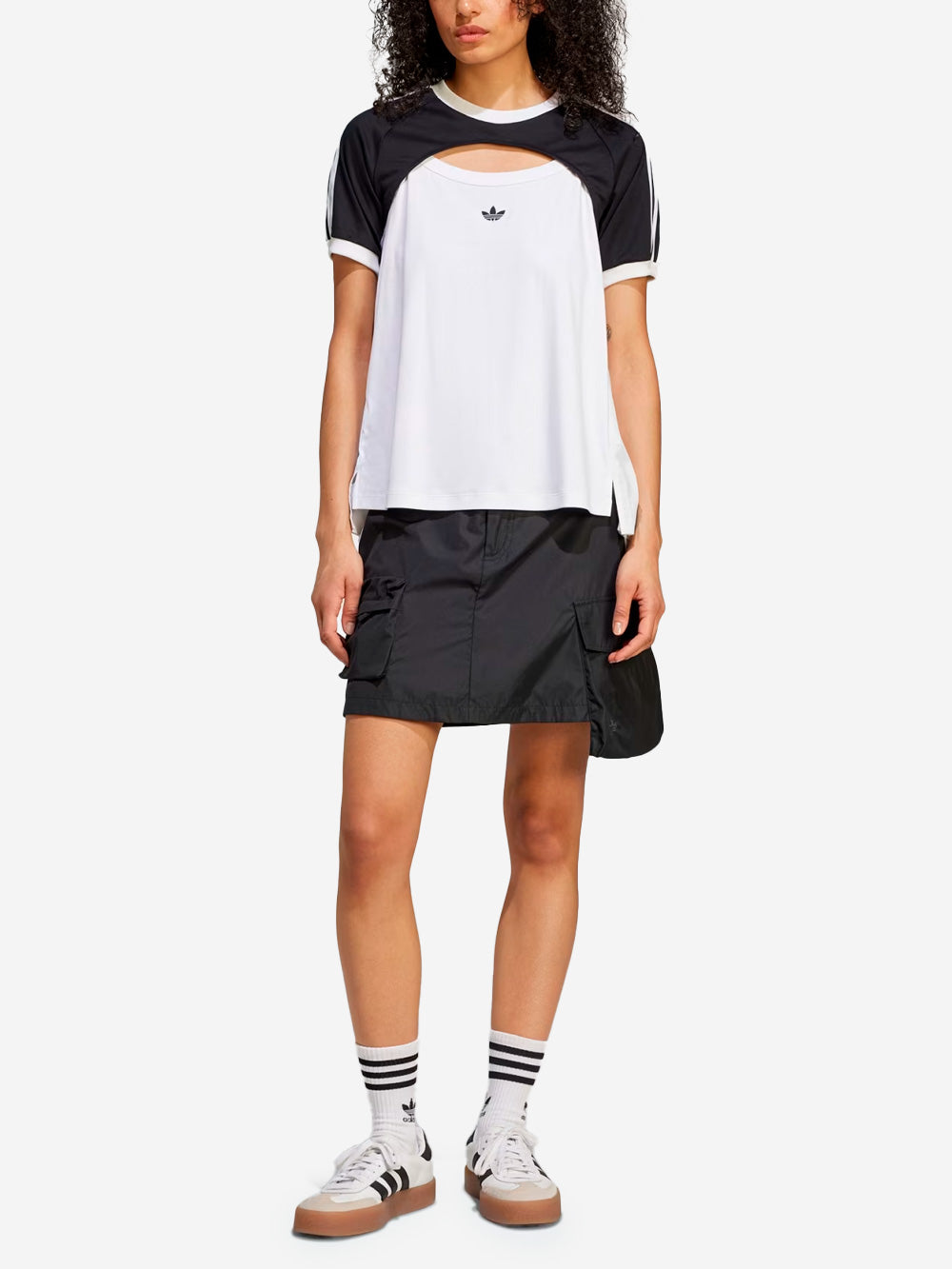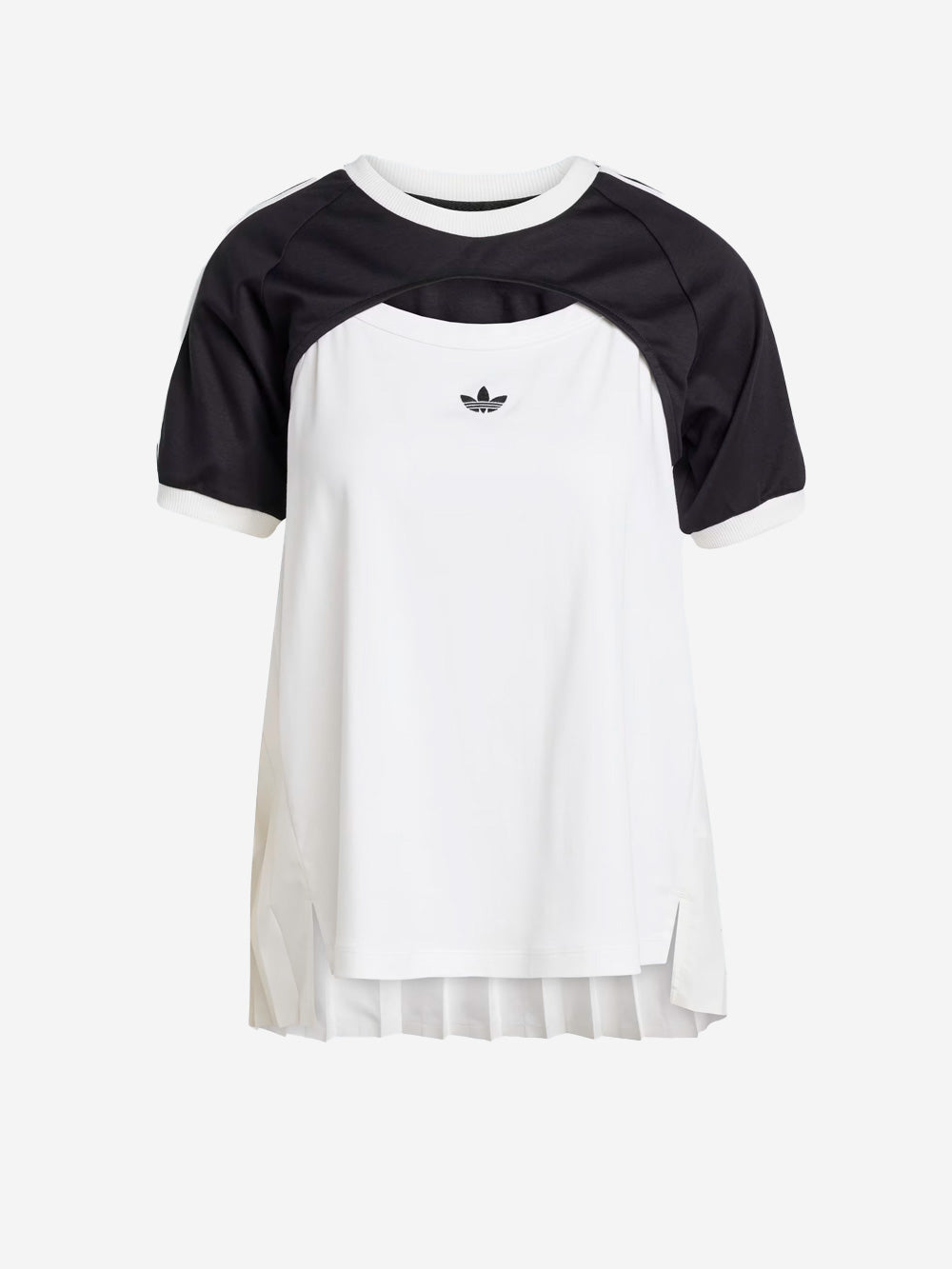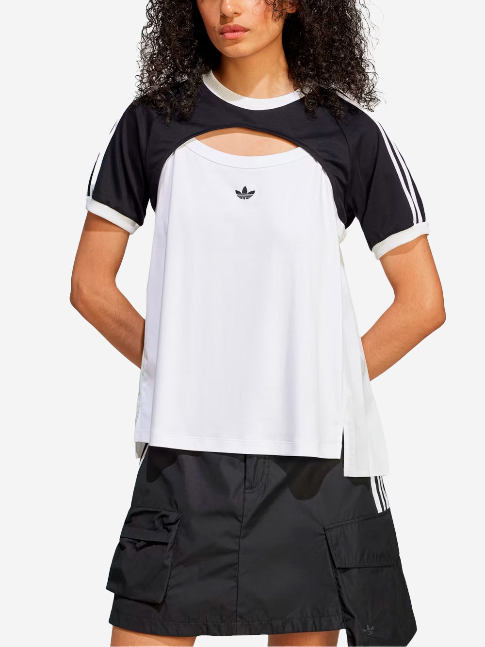 Le T-shirt R3CD Cali d'adidas Originals est le T-shirt qui fusionne le sportswear et le streetwear. Le modèle combine deux couches en une, d'abord un débardeur avec des détails inspirés des années 90 et du début des années 2000, puis une couche supplémentaire qui peut également être combinée avec d'autres articles de votre garde-robe. Le dos du débardeur est en tissu plissé, tandis que le devant est en tissu côtelé.