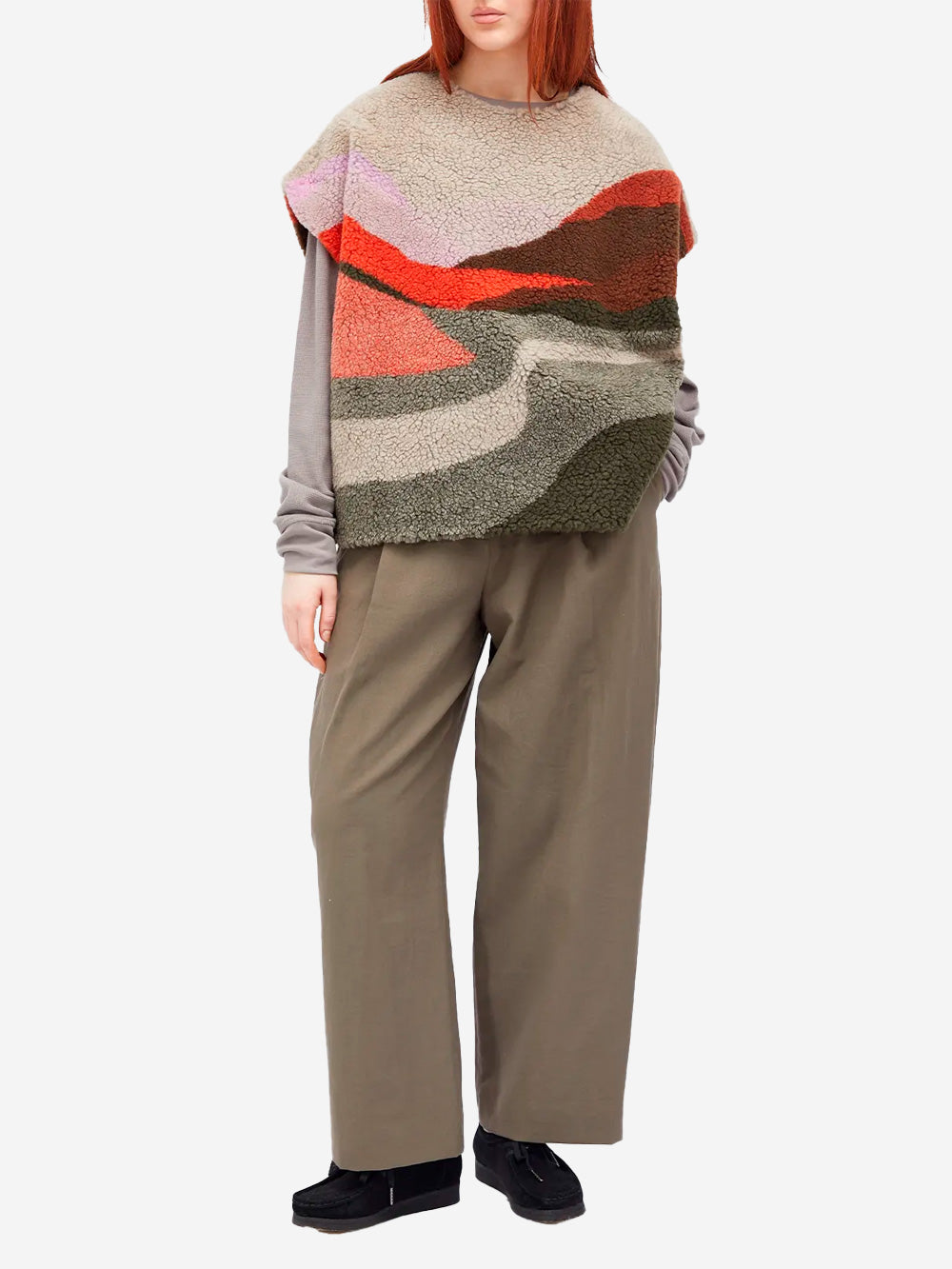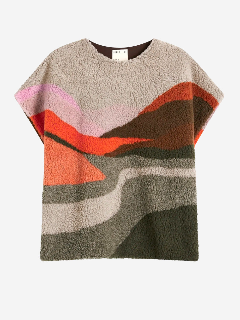 Le haut sans manches Pillow est le vêtement emblématique de Girls of Dust. Fabriqué en polaire épaisse multicolore, ce haut est incroyablement confortable et polyvalent. Vêtement à superposer ou source de chaleur supplémentaire, le haut Pillow en polaire teddy deviendra votre meilleur allié pendant les mois les plus froids.