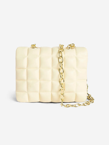 Petit et pratique, le sac à bandoulière Gigi de Stand Studio est réalisé en cuir matelassé souple bicolore. Portez-le avec la chaîne maxi ou à l'épaule pour ajouter une touche de style à des tenues plus formelles.