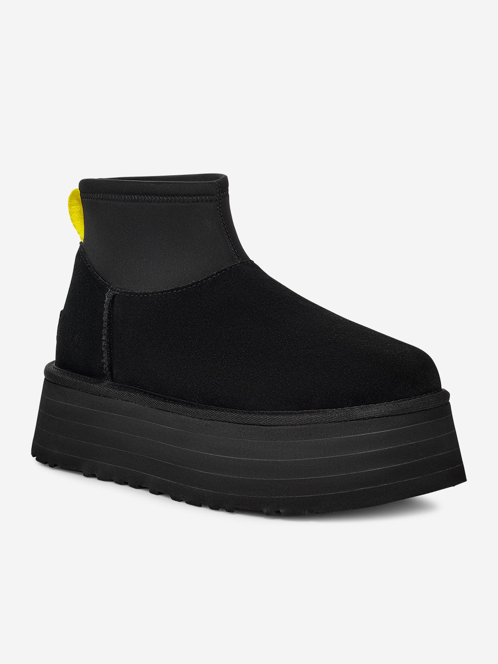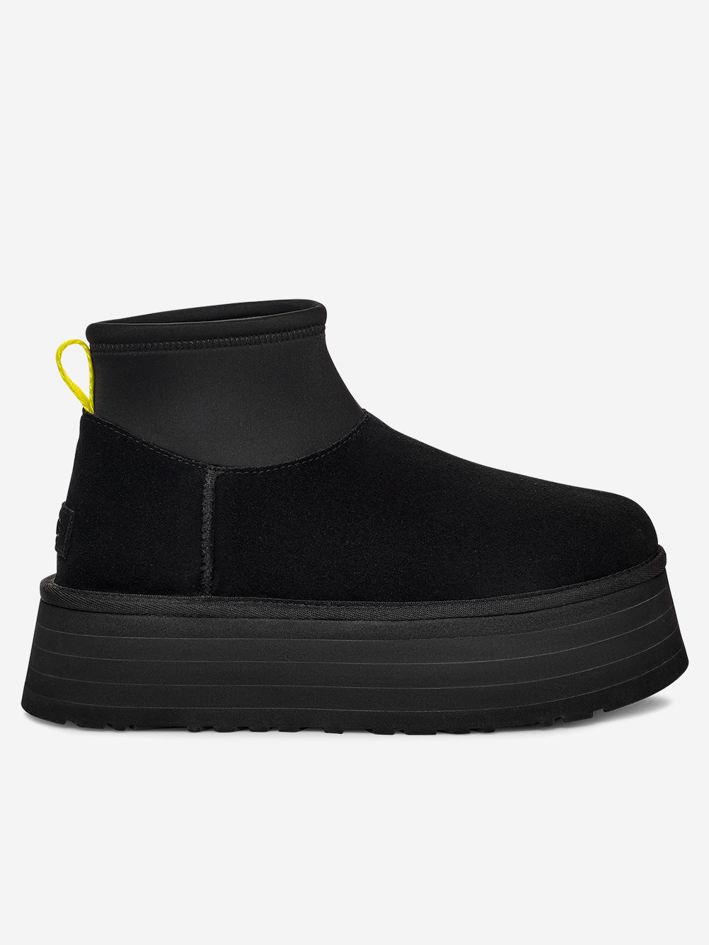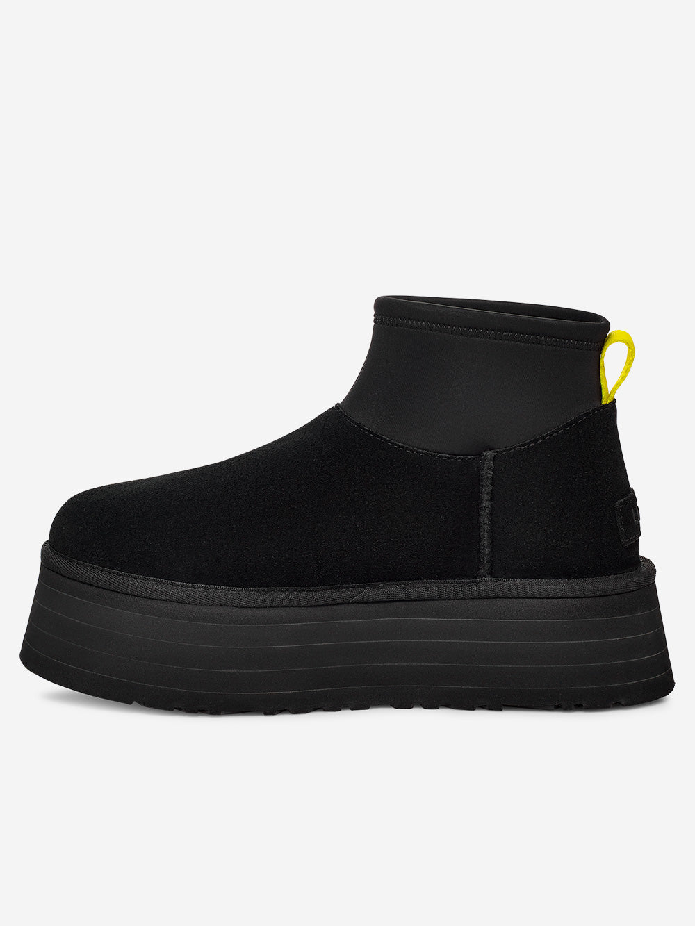 La polyvalence de la Classic Mini et le confort inégalé de la Classic Dipper. La Classic Mini Dipper combine le meilleur des deux styles phares d'UGG pour créer une botte au design unique. La tige en daim, la plateforme emblématique et la doublure douce UGGplush™ vous rappelleront pourquoi vous aimez ces deux chaussures. Parfaites sur tout, essayez-les sur des mélanges inattendus.