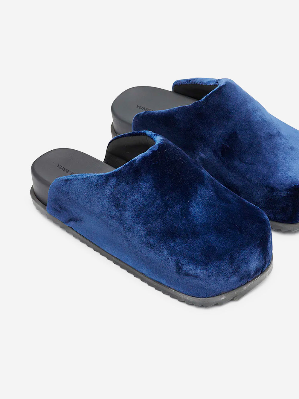 Truck Slide en cuir végétalien et velours TRS0028OCEAN BLUE VELVET