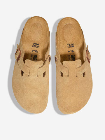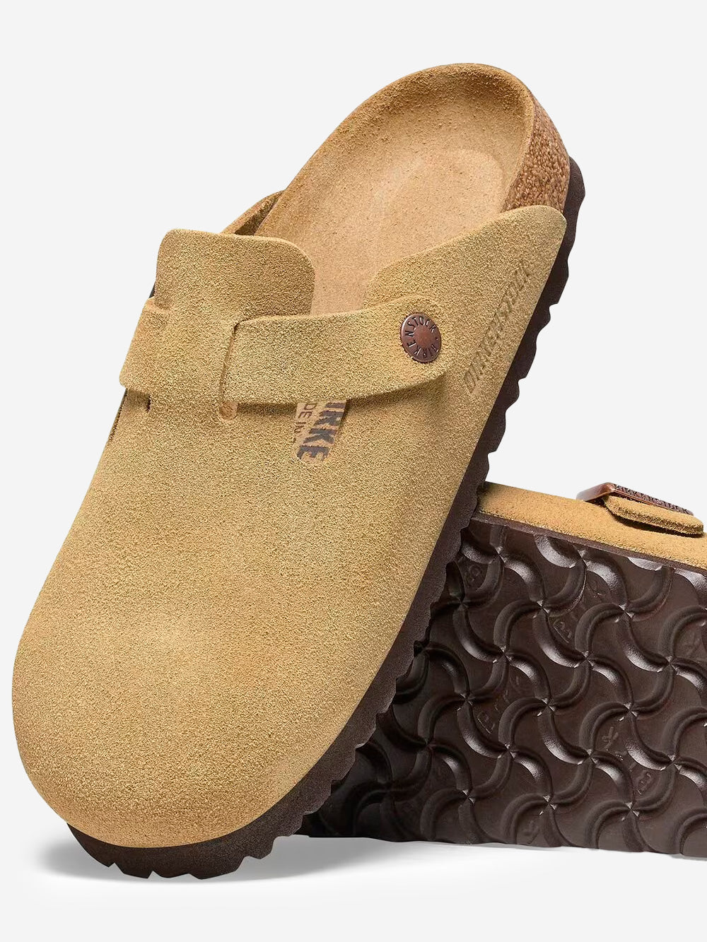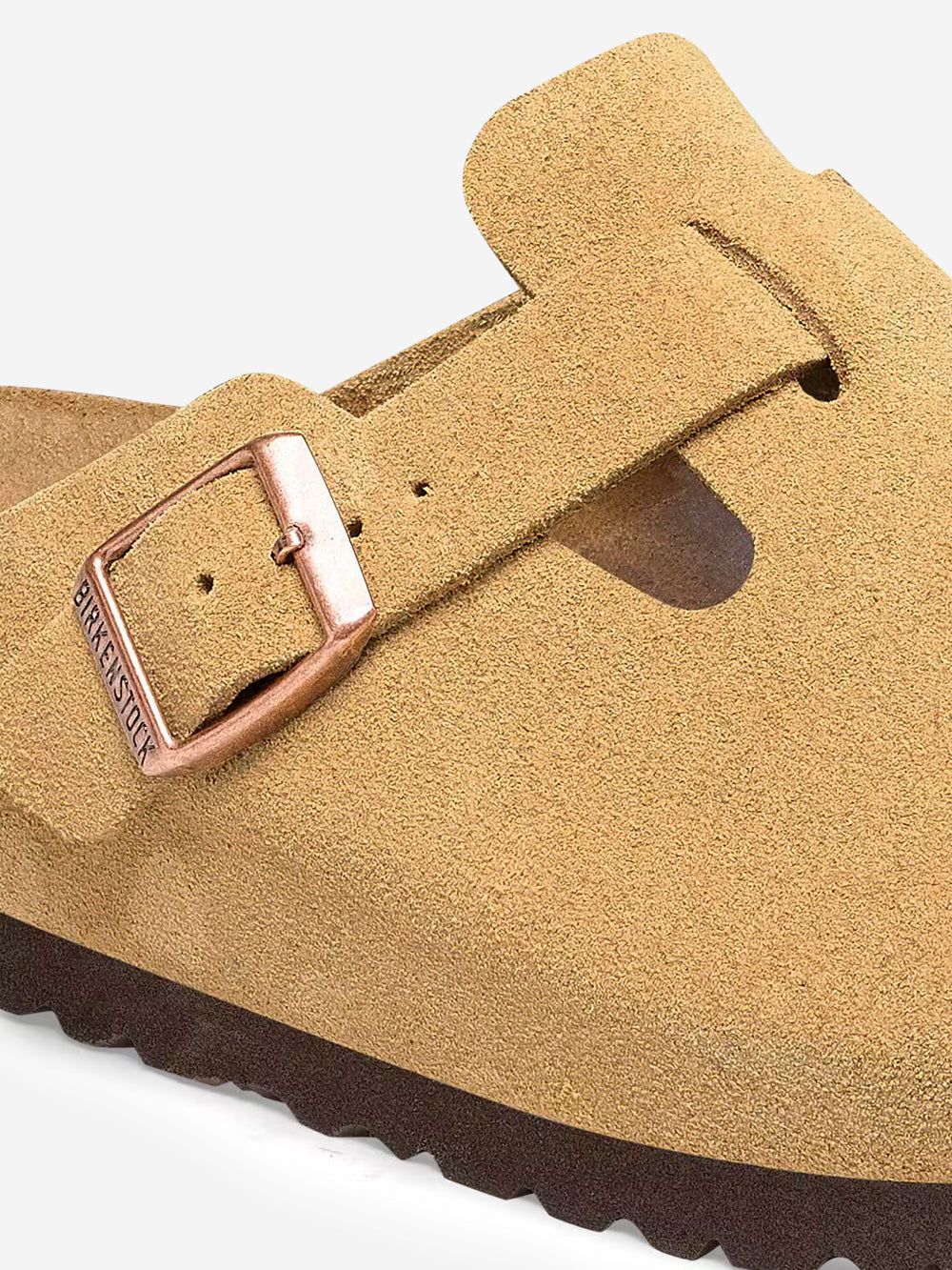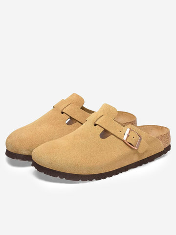 Les Birkenstock Boston sont des sabots en daim qui ne connaissent pas de saison. Caractérisées par une silhouette enveloppante et une assise plantaire souple, les Boston Latte Cream procurent une sensation de bien-être inégalée. La tige en daim crème de haute qualité et la boucle métallique sont les détails qui rendent ce modèle de Birkenstock iconique et intemporel. Vous ne pourrez plus vous en passer car elles deviendront votre seconde peau.