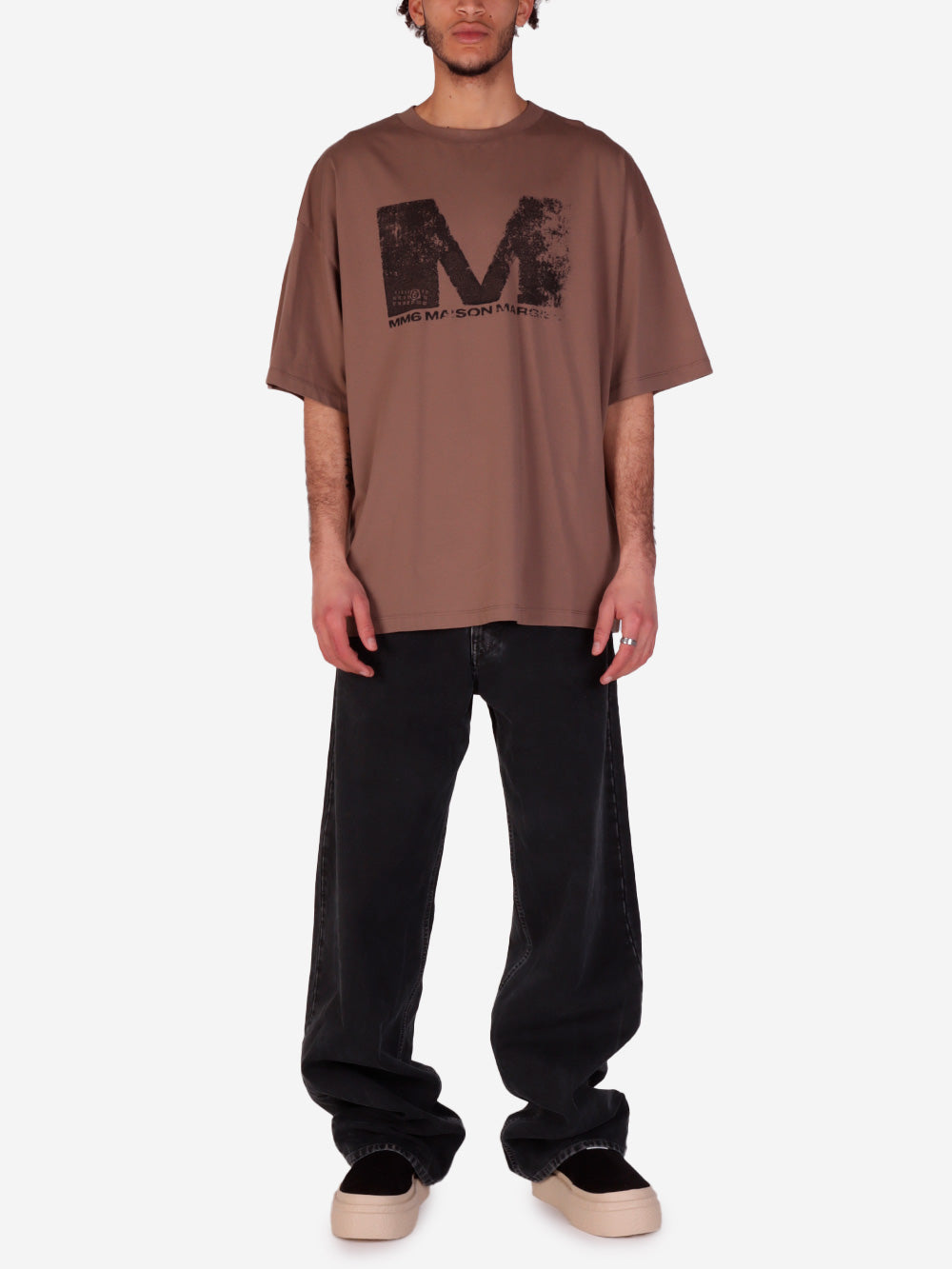 Le T-shirt marron de MM6 Maison Margiela est l'incarnation du streetwear contemporain. Confectionné en jersey de coton doux, ce t-shirt se distingue par le logo M estompé et le lettrage MM6 Maison Margiela. Parfait à porter en été sur un short en denim ou au printemps avec un look superposé.
