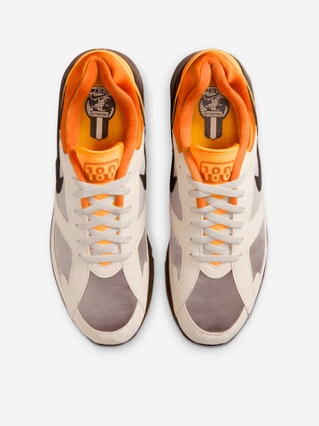 Les Nike Air 180 'Light Orewood Brown' sont des baskets légendaires, les premières à être dotées d'un coussin d'air exposé à 180 degrés. Fabriquées avec une tige en textile multicouche, ces Air 180 mélangent le marron clair avec du gris et des touches vibrantes d'orange. L'unité Nike Air à l'avant-pied absorbe les chocs, tandis que l'unité Max Air au talon offre juste ce qu'il faut de soutien. Les Nike Air 180 "Light Orewood Brown" sont la réédition parfaite d'un grand classique parmi les sneakerheads. Ajoutez-les à votre rotation de chaussures de sport dès maintenant.