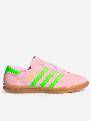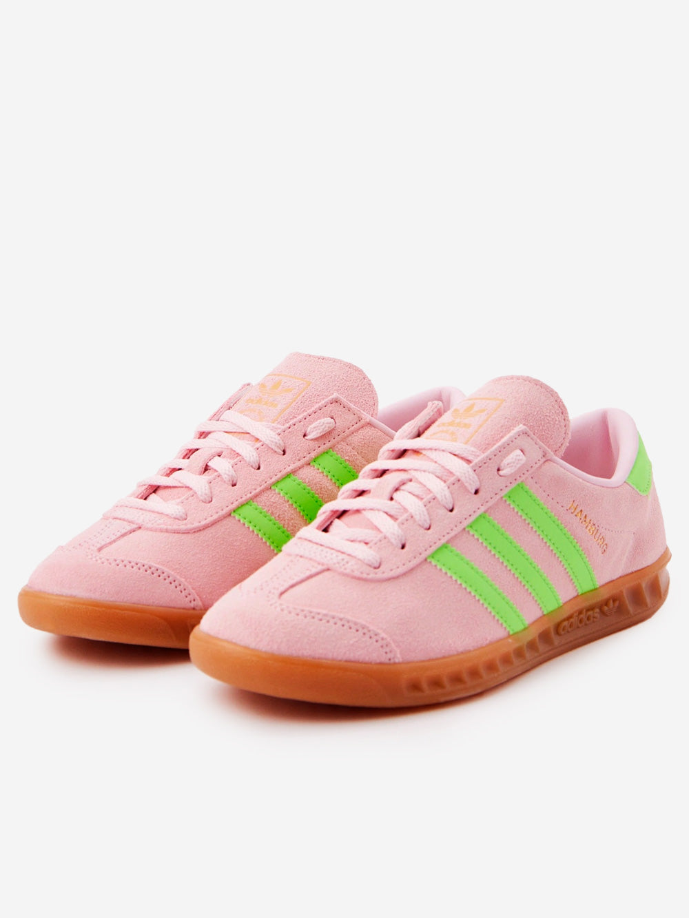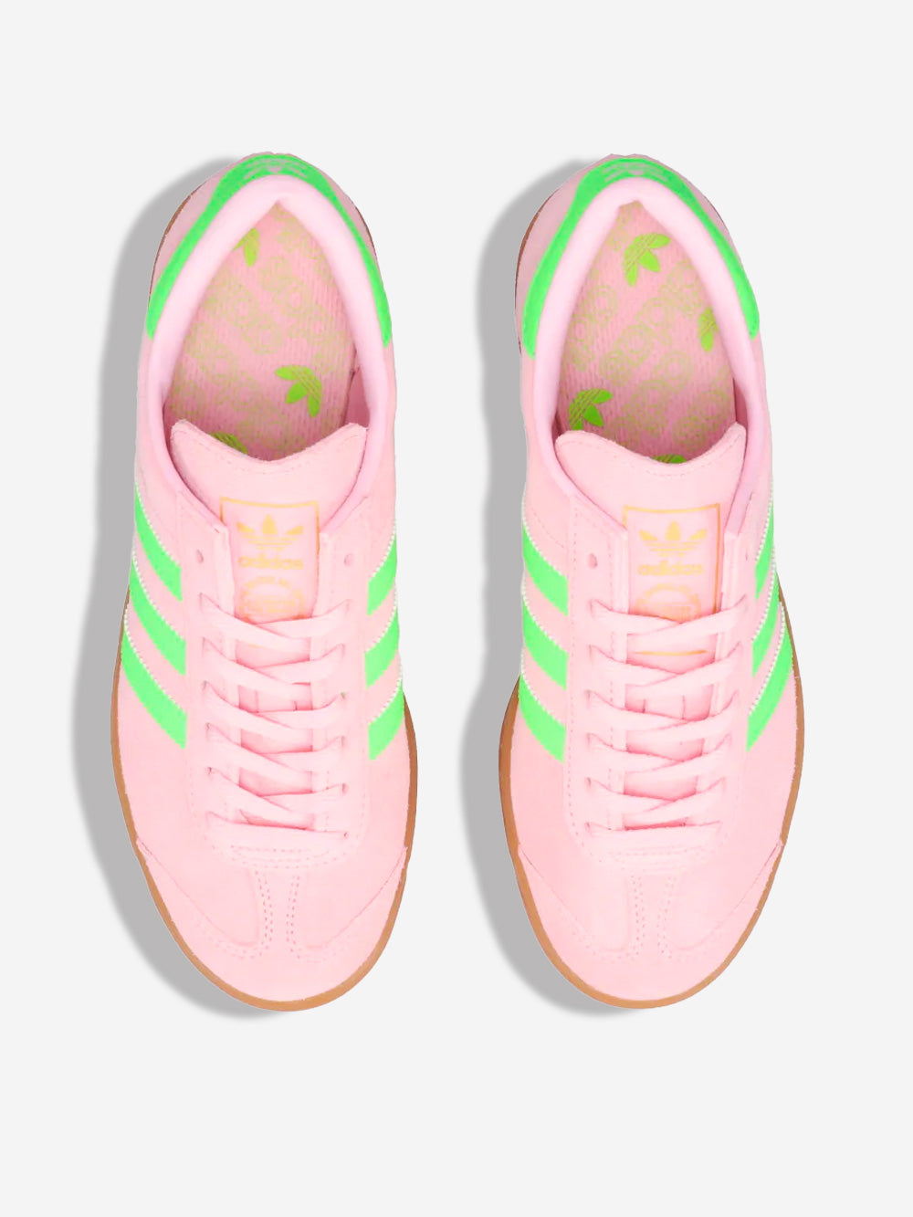 Le adidas Hamburg "Clear Pink" sono le iconiche sneakers che hanno dominato la scena degli anni '80, pronte a dominare la scena streetwear di oggi. Realizzate in pelle premium, presentano una punta a T con doppia cucitura, un rinforzo sul tallone e 3 strisce a contrasto che reinventano l'iconico look old-school in chiave contemporanea. La suola in gomma a profilo basso con pannelli laterali sagomati e grip a nido d'ape assicura massima stabilità, mentre la palette cromatica fonde perfettamente il rosa con i dettagli in verde. Abbinale a un paio di jeans o jogger, oppure a una gonna per completare il tuo outfit in puro stile adidas.