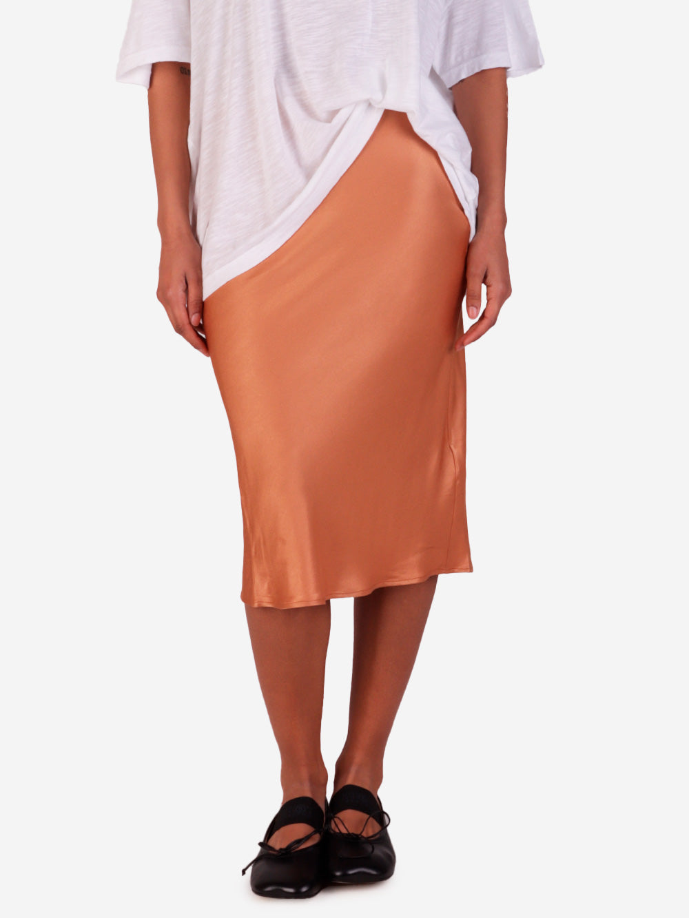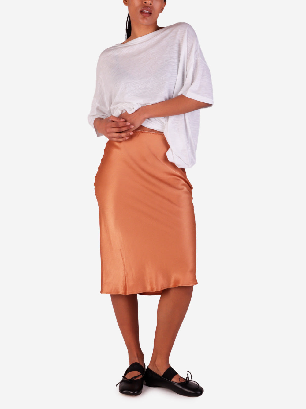 Questa gonna fluida di American Vintage è il modello satinato e dai toni caldi. Realizzata in viscosa, questa gonna è perfetta per creare look casual primaverili o estivi. Dotata di una pratica chiusura con zip e una comoda vita elasticizzata, questa gonna di American Vintage avvolge la silhouette senza fasciarla. Puoi abbinarla con t-shirt e sneaker, così come con una camicia e sabot per occasioni speciali.