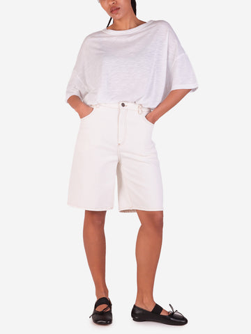 Questi shorts di American Vintage sono il modello da donna dal fascino vintage. Realizzati in cotone, questi pantaloncini presentano una vestibilità rilassata per regalarti la massima libertà di movimento. La colorazione, un bianco panna con cuciture visibili, li rende facilmente abbinabili e versatili. Sul retro il modello è impreziosito da una toppa con il logo American Vintage.