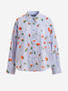 Realizzata in cotone e concepita per una vestibilità squadrata, questa camicia presenta spalle scese e orlo arrotondato, più lungo sul retro. La chiusura con bottoni aggiunge dettagli classici, mentre i ricami floreali impreziositi da paillettes, strass e perline arricchiscono il modello con un raffinato scintillio.
