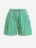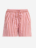 I pantaloncini a righe di Essentiel Antwerp sono splendidamente impreziositi da delicate decorazioni in strass. Realizzati in misto cotone, presentano vita alta e una vestibilità comoda, oltre a un elastico in vita e a una chiusura con coulisse per un comfort che dura tutto il giorno. I dettagli a pince rovesciate in vita aggiungono una struttura raffinata, mentre le tasche oblique donano un tocco di praticità.