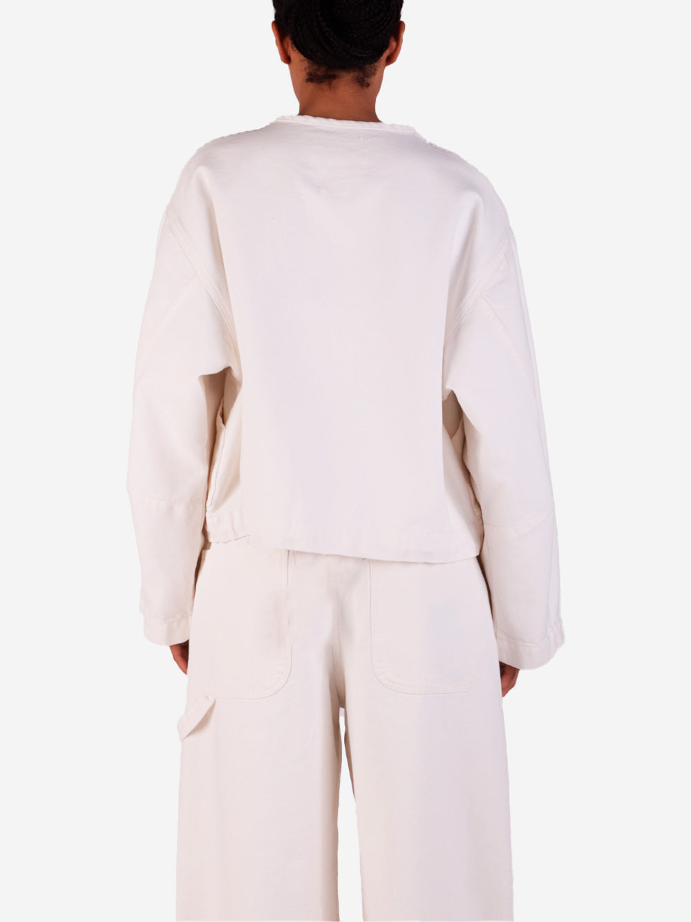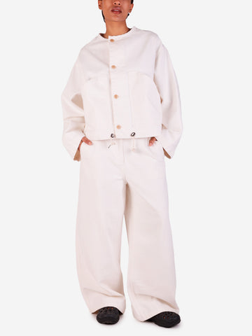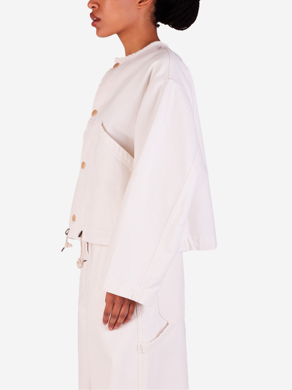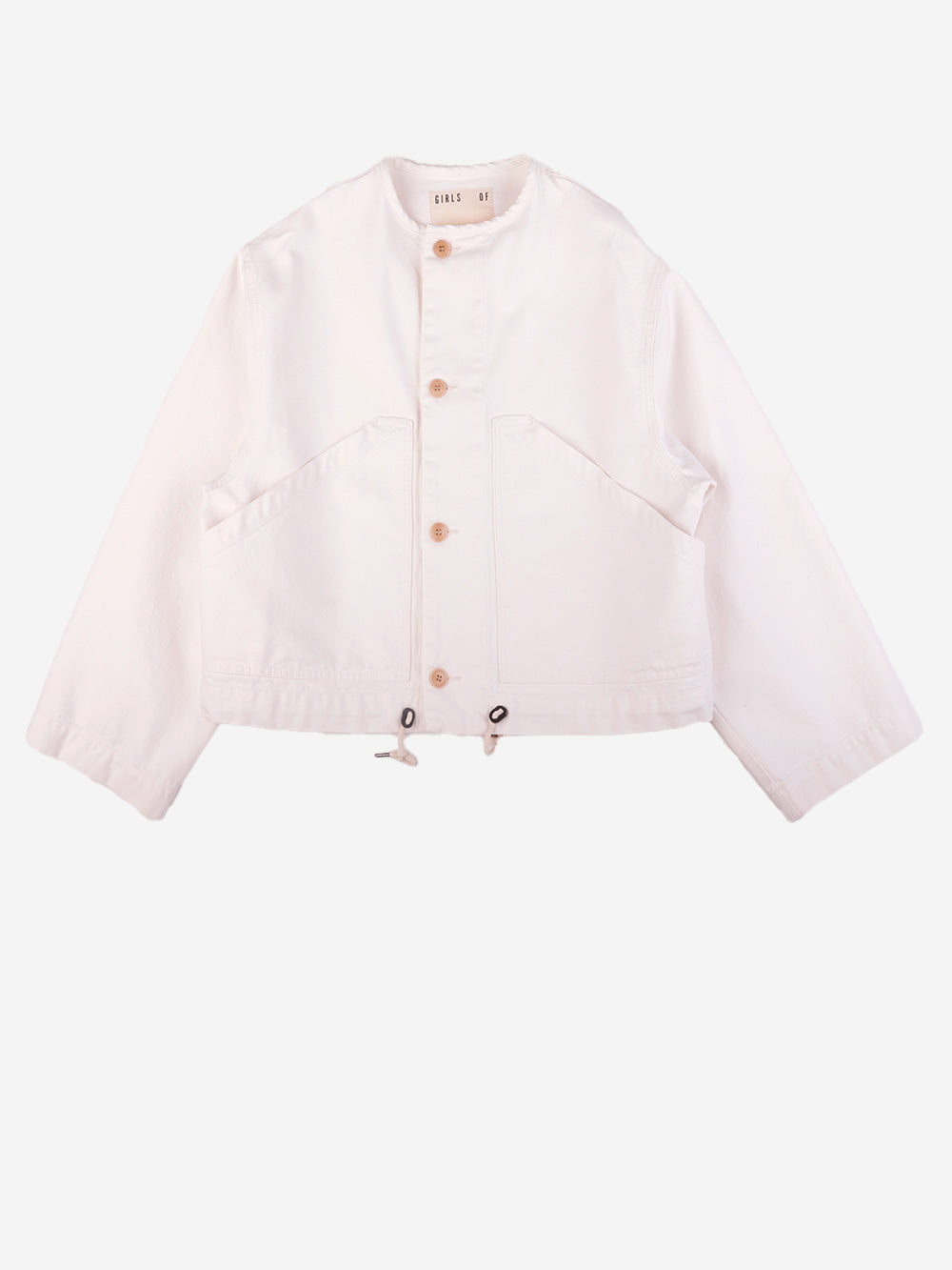 La giacca Nuclear di Girls of Dust è il modello senza colletto che eleva il guardaroba femminile primaverile con un tocco vintage e sofisticato. Realizzata in tela di cotone in un color bianco naturale, questa giacca presenta un design minimal e ricercato unita ad una vestibilità ampia e squadrata. L'orlo con coulisse regala un fit personalizzato, mentre le due garndi tasche anteriori aggiungono un inconfondibile tocco utility. Per un look minimal e contemporaneo, abbina questa giacca di Girls of Dust con i pantaloni in denim nella stessa colorazione neutra.