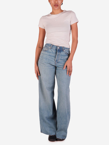 I jeans Bethany di Haikure sono il modello da donna dal fit oversize perfetto per l'estate. Realizzati in cotone e l'aggiunta di lyocell, questi jeans sono incredibilmente confortevoli e leggeri. Dotati di cinque tasche e passanti per cintura, i Bethany si distinguono per l'orlo fondo tagliato a vivo sul fondo che aggiunge un dettaglio distressed alla silhouette classica. Sul retro il modello presenta l'iconica patch con logo Haikure.