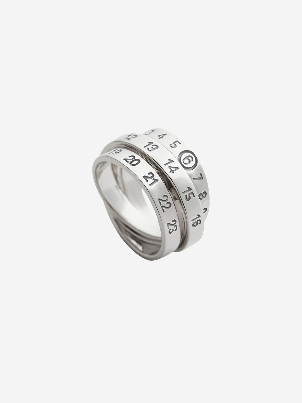 L'anello Triple Logo di MM6 Maison Margiela è l'accessorio dal design sofisticato con cui arricchire e personalizzare i tuoi look. Realizzato in ottone, quest'anello presenta un design a tre fsce impreziosite dall'iconico logo Numeric di MM6 Maison Margiela. Qui nella colorazione argento.