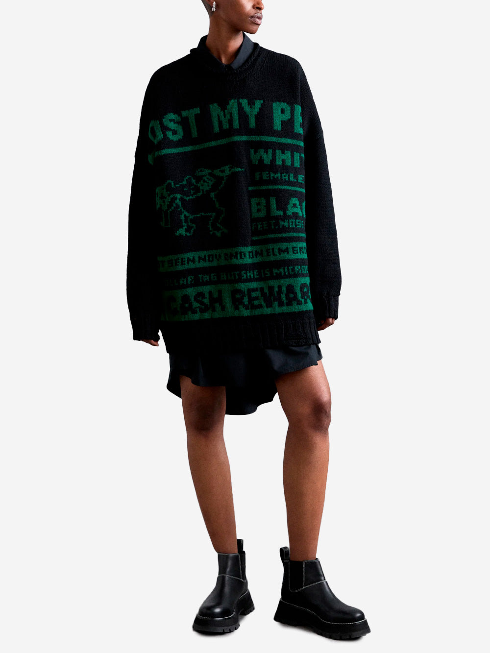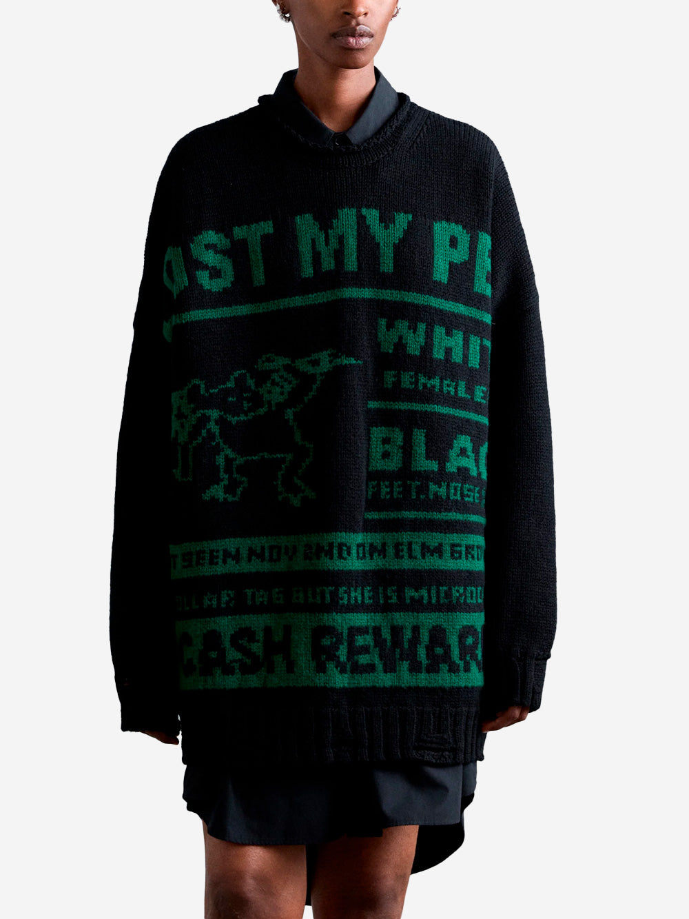 Il maglione di MM6 Maison Margiela è il modello oversize da donna. Realizzata in morbida lana, questo capo presenta un design audace con grafica "LOST MY PET", "WHITE", "BLACK", "CASH REWARD". Un capo streetwear caratterizzato da una vestibilità oversize, lungo fino a metà coscia, che puoi abbinare liberamente sia su look casual che formali.