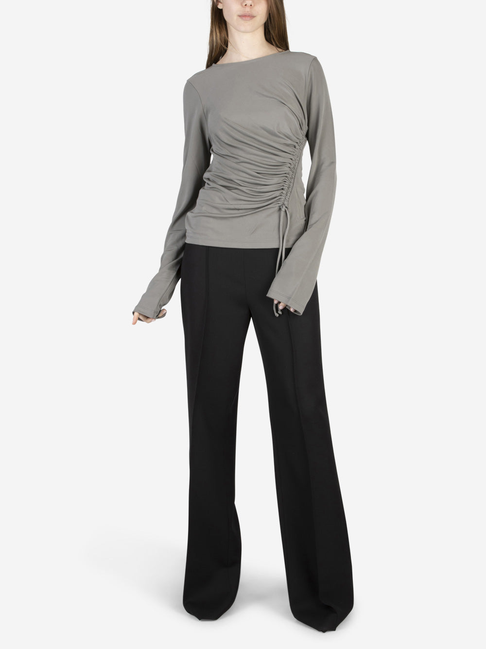 Chiusura con zip laterale Cut-out sul fianco Piega frontale Gamba a palazzo Made in EU Vestibilità:Fit regular La modella è alta 175 cm e indossa la taglia 36- Prezzo di listino
