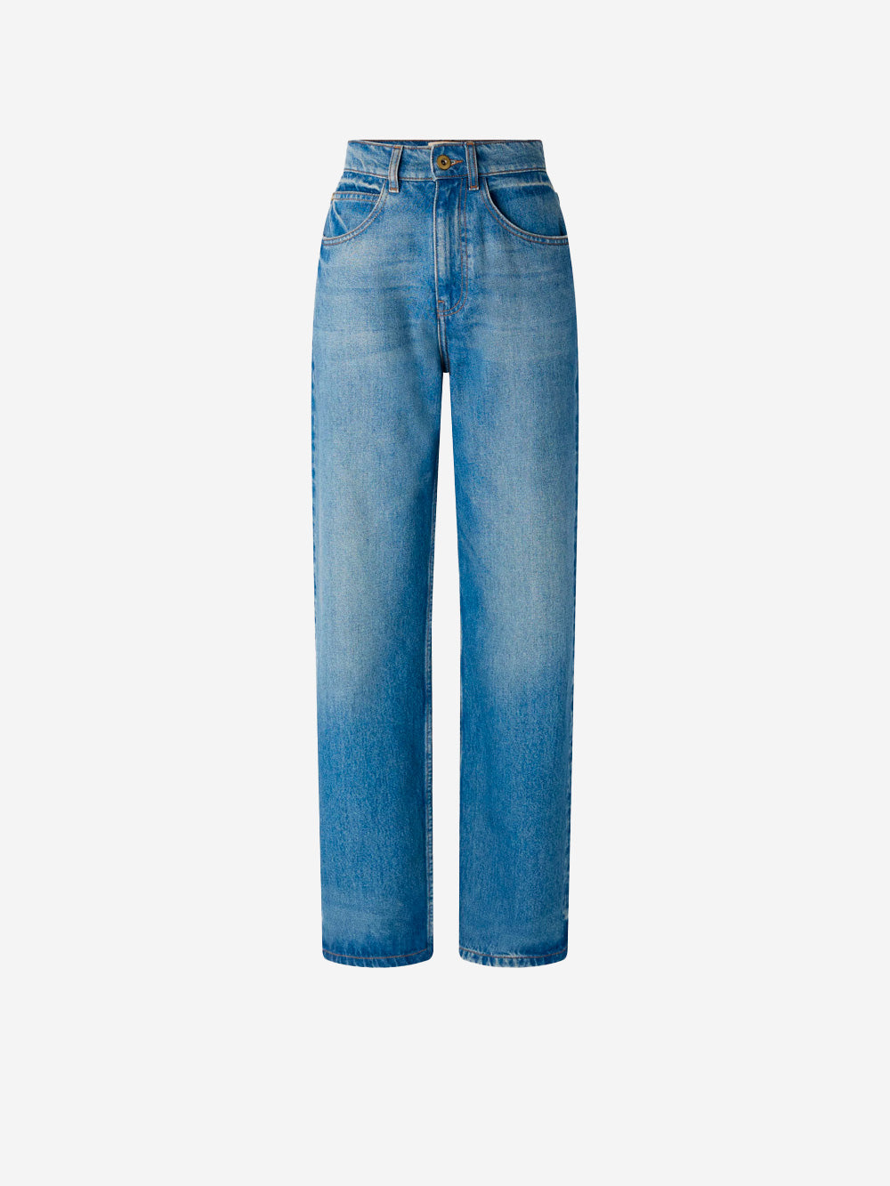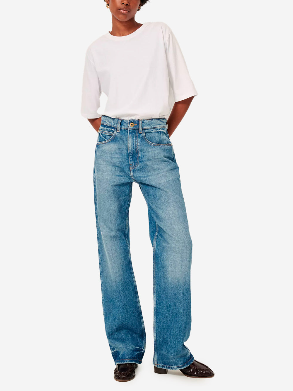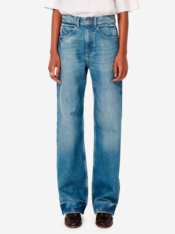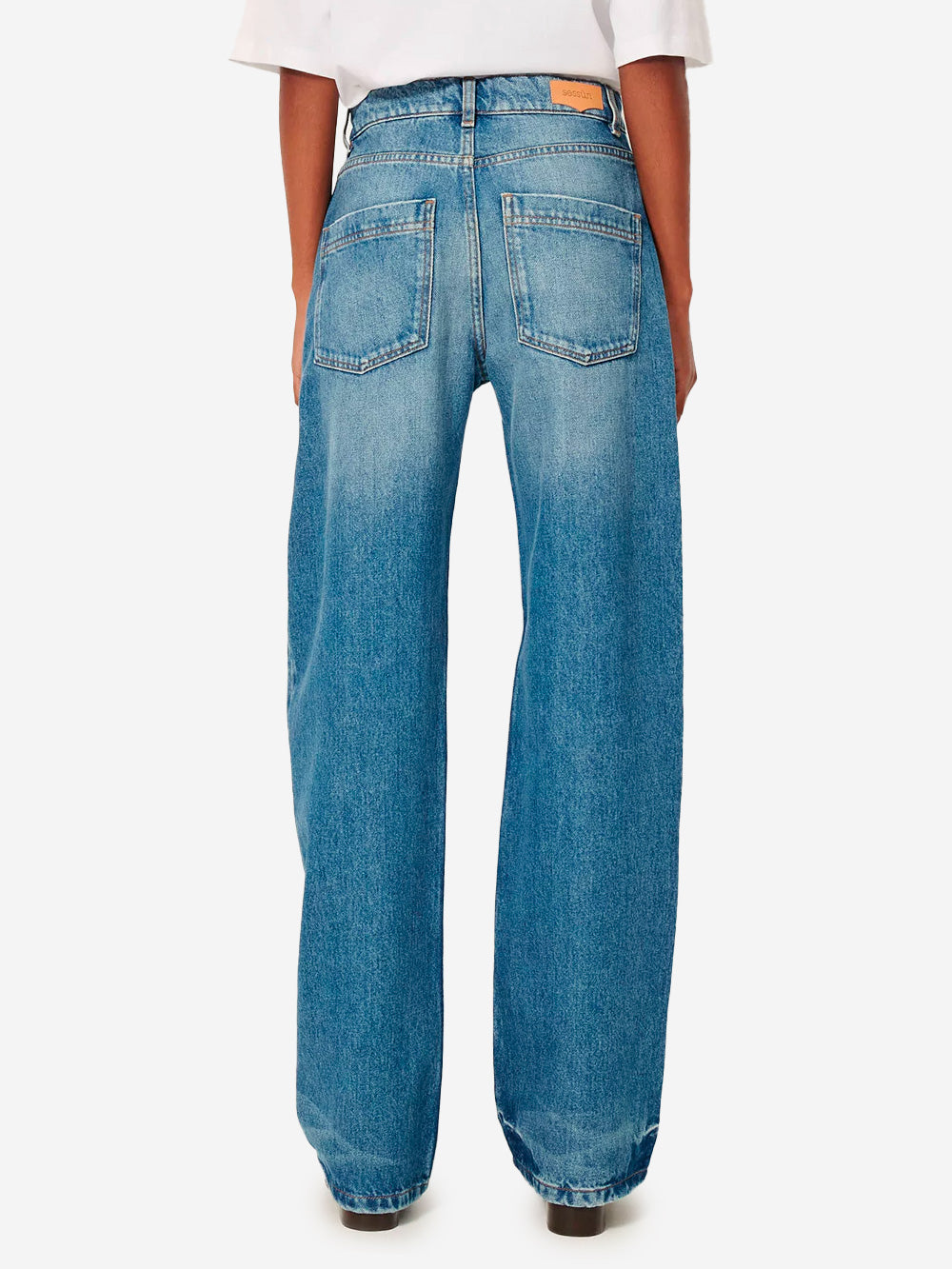 I jeans 'Denimi' di Sessùn sono i pantaloni dal taglio rilassato che fondono l'estetica minimal con lo streetwear contemporaneo. Realizzati in cotone biologico, questi jeans a vita media presentano sbiaditure sull'orlo e un taglio rilassato dal fascio contemporaneo. Le classiche cinque tasche aggiungono dettagli funzionali, mentre l'ampia patch in pelle goffrata "Sessùn" sul retro impreziosisce il modello.