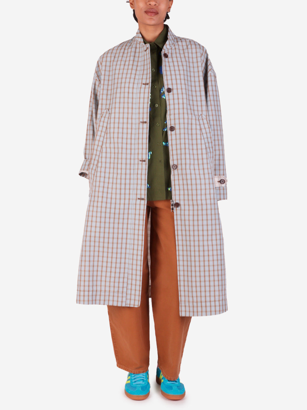 Il trench a quadri di T_Coat è il modello da donna che unisce il fascino del vintage con i richiami al mondo preppy. Realizzato in cotone e l'aggiunta di fibra sintetica, questo trench presenta un patttern a quadri allover che lo rende ricercato. Concepito con due trame diverse sul fronte e sul retro, questo trench di T_Coat è l'ideale per look primaverili dai toni delicati e neutri.
