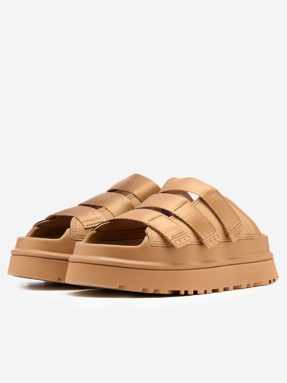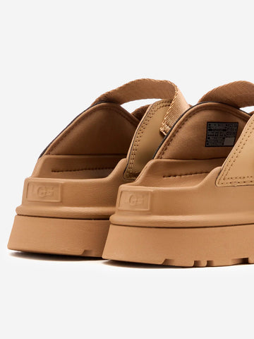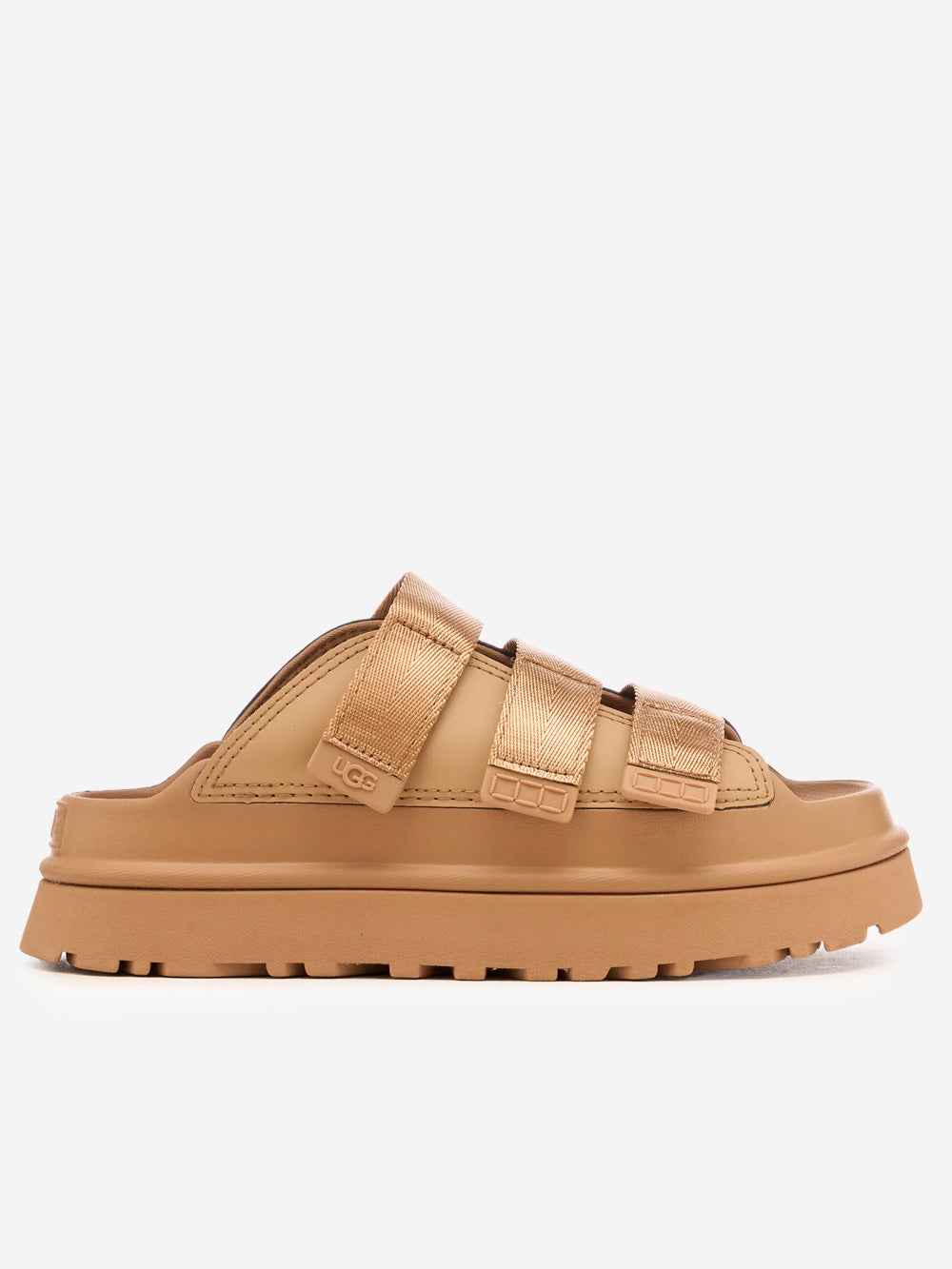 La ciabatta GoldenGlow di UGG è il modello versatile e colorato perfetto per l'estate. La suola, realizzata in EVA da canna da zucchero leggerissimo ed elastico, è fresca, pratica e offre il giusto supporto al mare e in città. La tomaia è dotata di tre cinturini regolabili in fibre riciclate, che ti permettono di regolare la calzata alla perfezione. Che tu le indossi con o senza calzini, le UGG GoldenGlow diventeranno le tue ciabatte preferite dalla mattina alla sera.