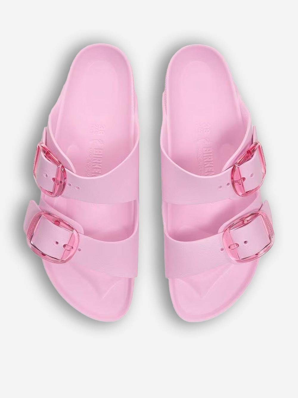 I sandali Birkenstock Arizona Big Buckle EVA sono un classico del footwear estivo. Realizzati con una tomaia in EVA in rosa, gli Arizona Big Buckle presentano una fibbia ad ardiglione grande ed elegante che aggiunge un tocco estroso al design classico. Impermeabili, inodori e incredibilmente leggeri, i sandali Arizona EVA sono semplicemente un must. Il comfort è impeccabile, grazie all'iconico plantare anatomico di Birkenstock. Porta le tue Birkenstock Arizona in città o in spiaggia per scoprire la versatilità di questo sandalo che non conosce limiti.