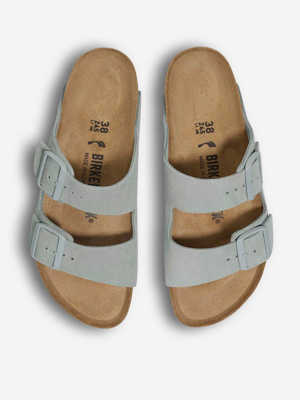 Le Birkenstock Arizona in suede, nella colorazione Pure Sage, sono un verio e proprio classico del footwear dal design senza tempo. Questa versione, realizzata in morbida pelle scamosciata dall'effetto opaco, presenta fibbie e dettagli in colore coordinato. La colorazione Pure Sage, contemporanea e sofisticata, risalta la silhouette del modello, rendendolo ancora più ricercato. Il comfort è la vera cifra stilistica delle Birkenstock Arizona: il plantare anatomico in sughero e lattice e il sottopiede in pelle scamosciata regalano comodità e supporto senza compromessi. Più di un sandalo, una vera e propria icona genderless.