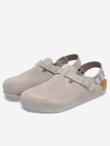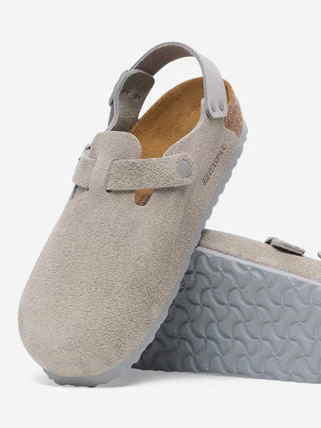 Le Tokio Stone Coin sono l'epitome del comfort assoluto firmato Birkenstock. Realizzati in pregiata pelle scamosciata, questi clogs sono dotati di un plantare anatomico in sughero e lattice che si adatta perfettamente al tuo piede. Disponibili in una colorazione grigia Stone Coin, le Tokio sono una valida alternativa alle Boston per chi cerca stile e comfort senza compromessi. La chiusura regolabile con cinturino posteriore tono su tono e il design minimale rendono queste scarpe ancora più iconiche. A prova di fit check, non potrai più farne a meno.