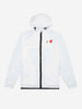 Questa giacca a vento full zip è realizzata in collaborazione fra Comme des Garçons Play e K-Way. Realizzata in resistente e leggero nylon, questa giacca unisce il funzionalismo outdoor di K-Way con l'irriverenza giocosa di Comme des Garçons Play. Presenta una chiusura full zip e un cappuccio regolabile per ripararti dalla pioggia e dal vento ed è inoltre ripiegabile e facilmente impacchettabile in valigia o zaino. I due loghi, quello di Comme des Garçons Play e K-Way, sono entrambi presenti sul petto, mentre un cuore aggiuntivo di CDG Play è ricamato sulla spalla posteriore per rafforzare la partnership CDG Play x K-Way.