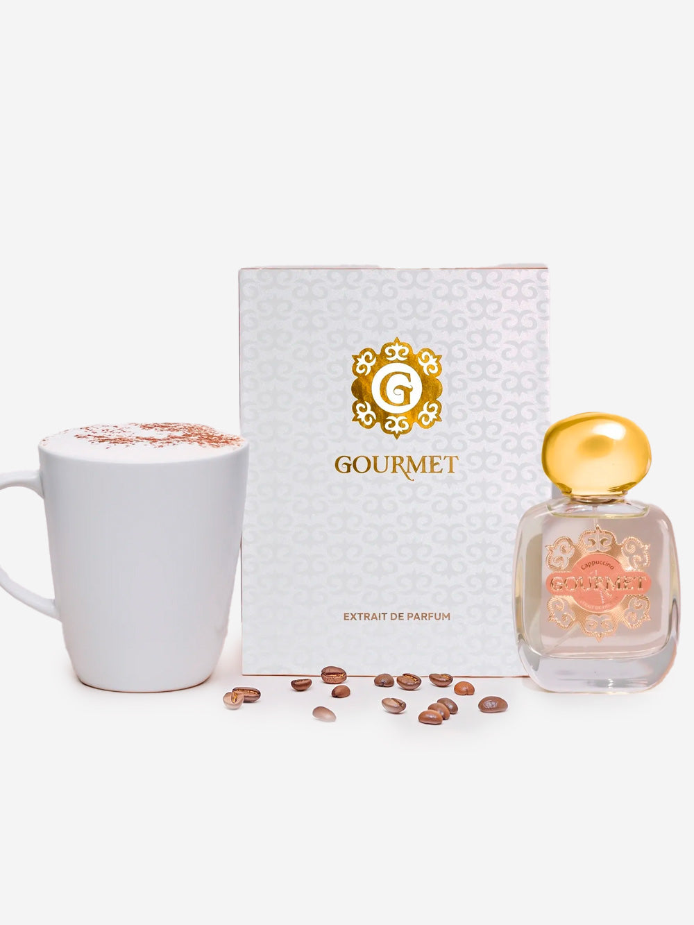 Cappuccino è un profumo avvolgente che si apre con cioccolato, schiuma di latte e sandalo, lasciando protagonista un cuore ricco di caffè, liquirizia ed eliotropo. Il fondo di cacao amaro, patchouli e legno di cedro conferisce una scia profonda e sofisticata, evocando il piacere di un cappuccino gourmet.