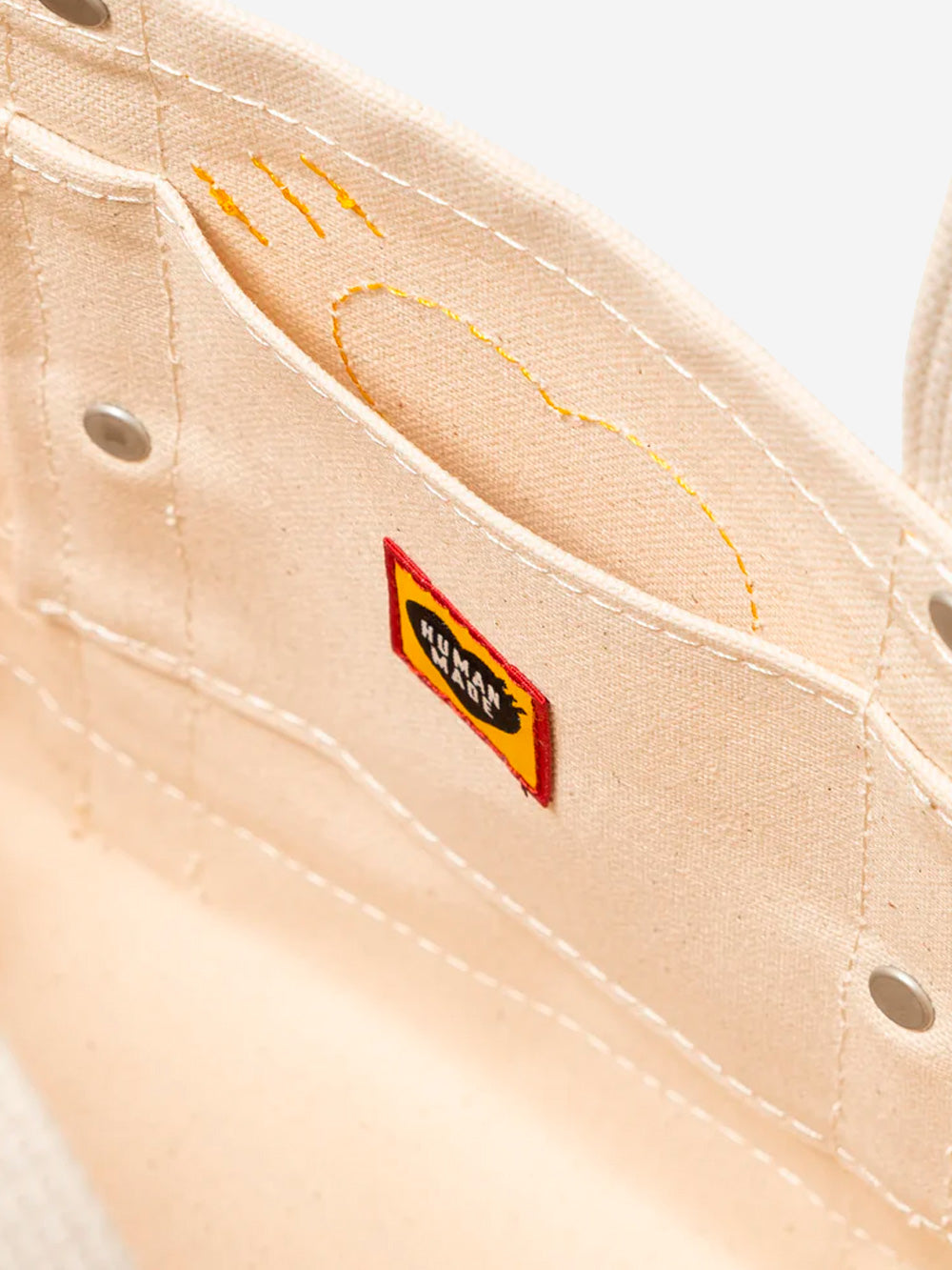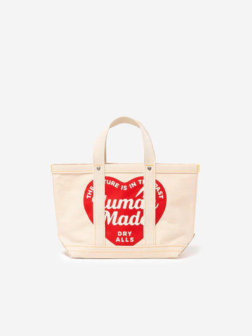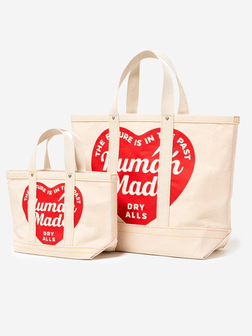 La tote bag small di Human Made è la borsa che unisce l'estetica vintage con il funzionalismo contemporaneo. Realizzata in tela di cotone, questa borsa presenta una grafica a forma di cuore e le iconiche frasi "Dry alls"e "The Future is in The Past". Grazie alle sue generose dimensioni, puoi portarla a scuola o a lavoro o in altri contesti. Entra a far parte della community di Human Made, il brand di streetwear giapponese creato da Nigo.