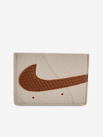 Ispirato all'iconica Nike Air Max 90, questo portafoglio riproduce la texture della pelle di serpente. Dotato di due scomparti per carte e di tre scomparti per contenere contanti, carte e documenti, è un accessorio pratico e versatile da portare sempre con sé.